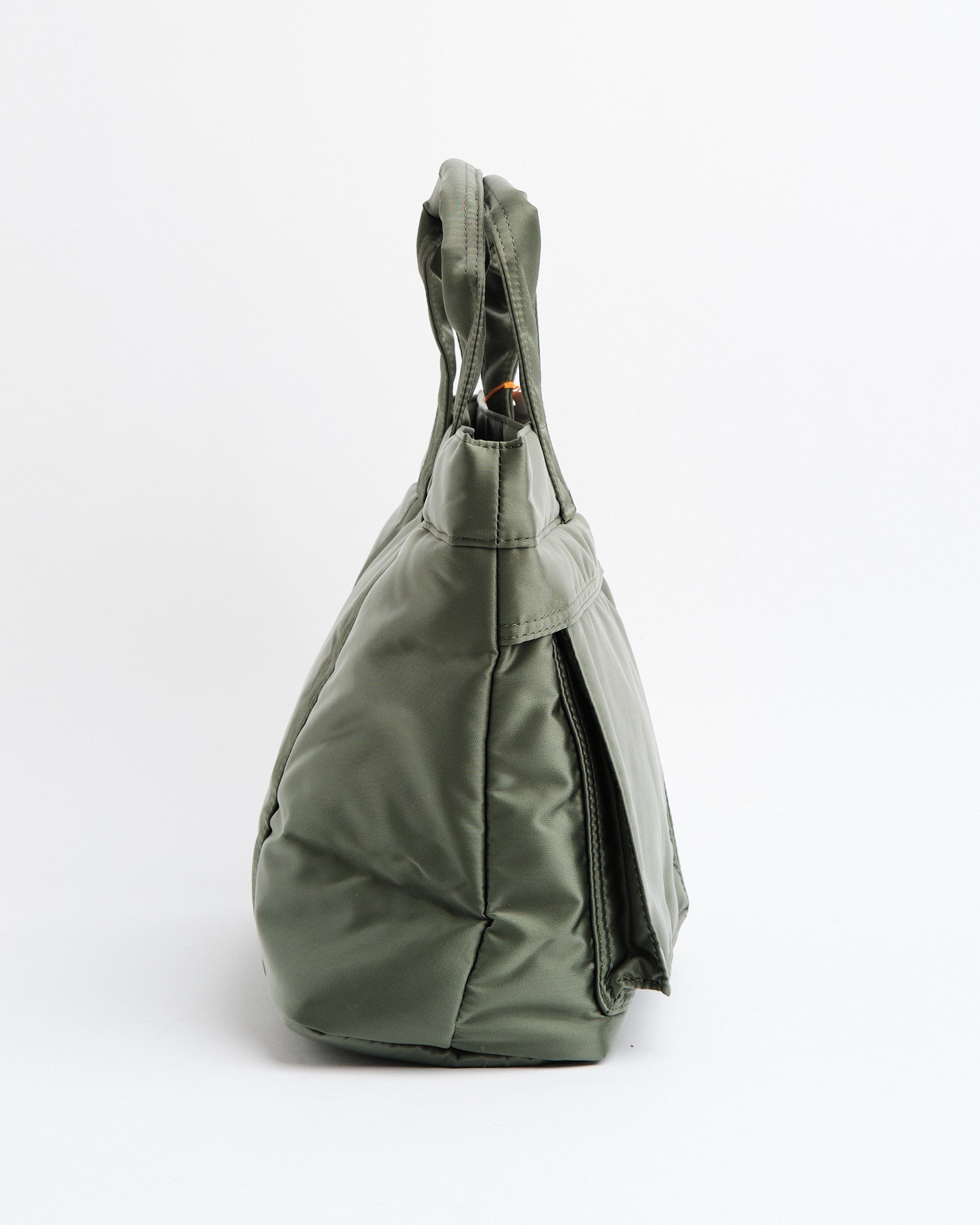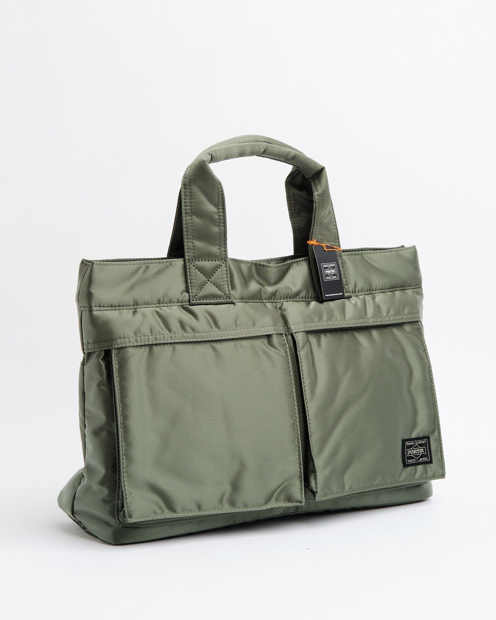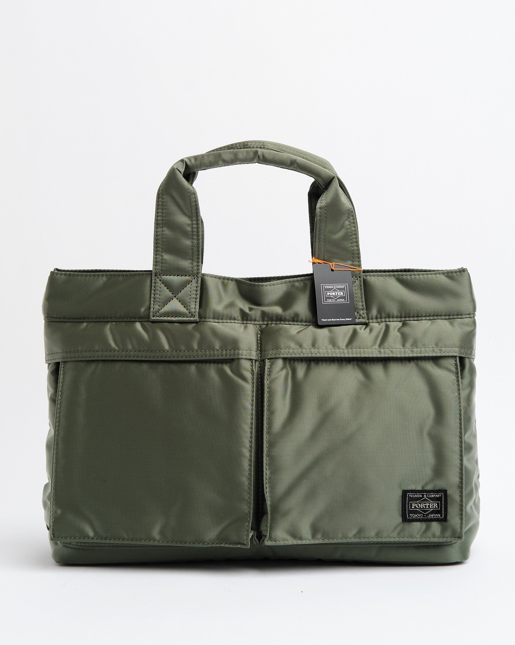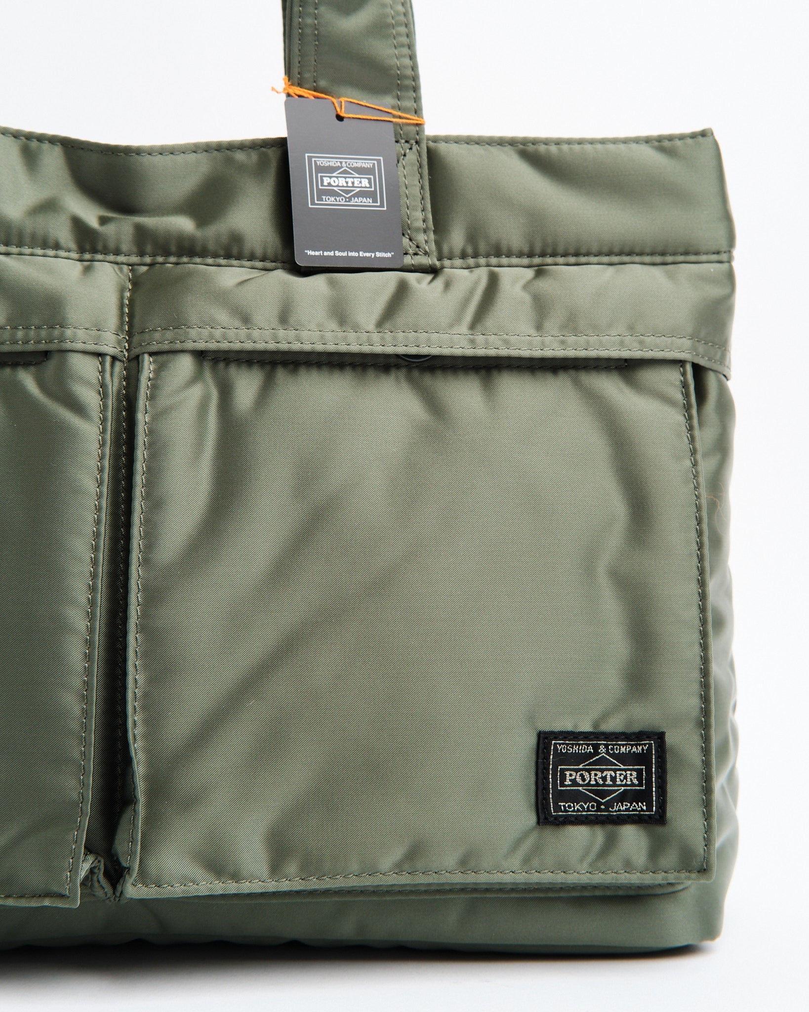 Bekijk de PORTER YOSHIDA 622 76995 30 TANKER TOTE BAG in een SALIEGROENE tint. Deze tas is onderdeel van de Tanker Serie die zijn debuut maakte in 1983 en inspiratie haalde uit de US Air Force vliegjack MA 1. Gemaakt met een drielagige mix van nylon twill polyester katoen en nylon tafzijde is deze tas licht maar stevig. De levendige reddingsoranje voering voegt een pop van kleur toe. Met een horizontaal ontwerp en twee tanker-stijl voorzakken is het geweldig voor het dragen van must-haves zoals een 500ml waterfles of lunchbox. Met afmetingen van B; 340mm, H; 240mm, D; 130mm (B; 13.4in H; 9.4in D; 5.1in) en een gewicht van 325g (11.5oz) biedt het voldoende ruimte zonder in te boeten aan stijl. Handgemaakt, in Japan toont deze tas Yoshida&Co.'s aandacht voor detail.