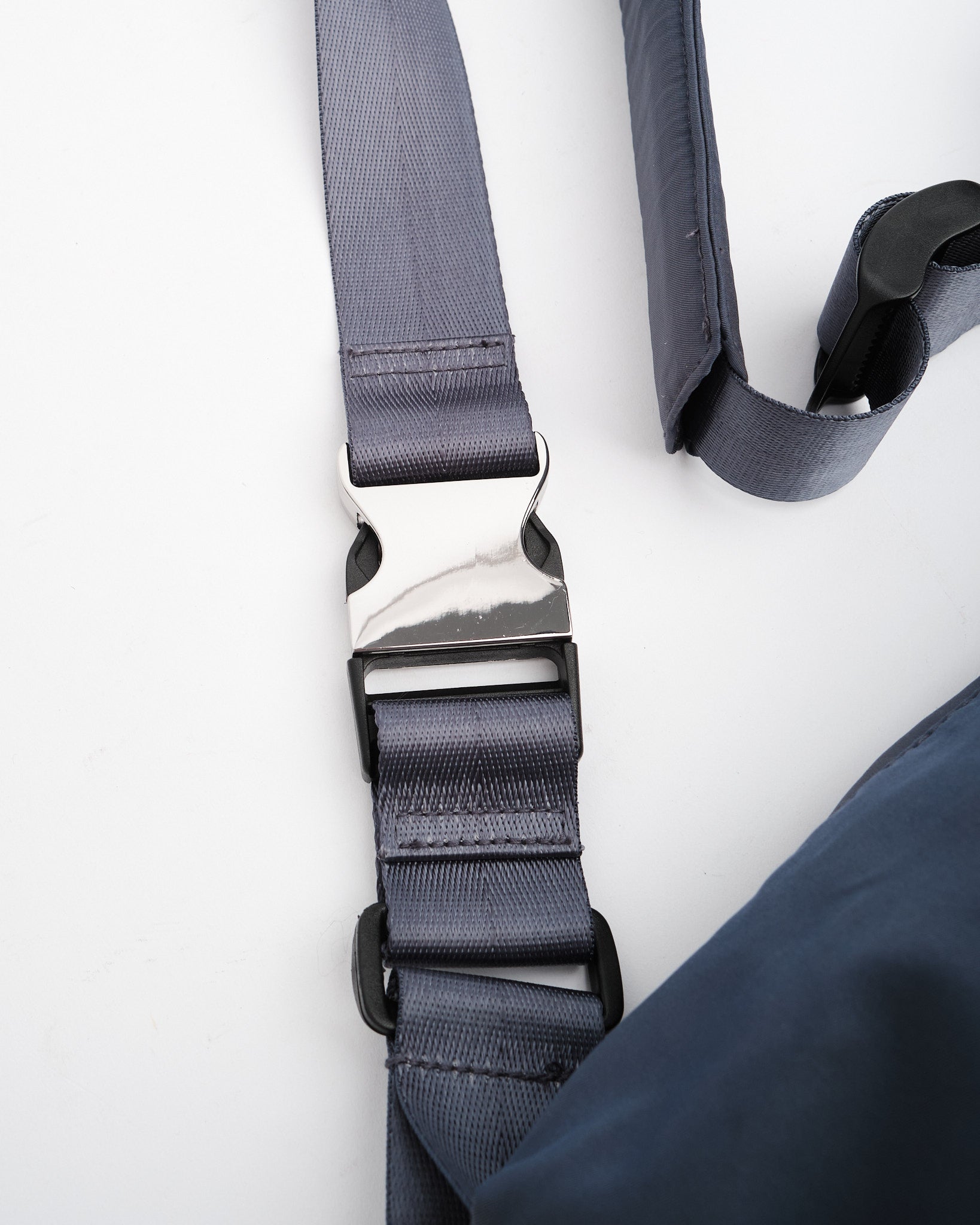 De tas heeft een verstelbare gevoerde crossbody band met ARCS-gemerkte zijontgrendeling gesp, een gebogen asymmetrisch lichaam ontworpen om je zijde te omhelzen, en een ruim interieur met ritssluiting voor moeiteloos gebruik. Het is gevoerd, unisex, en met trots gemaakt in India met duurzaamheid als kern.