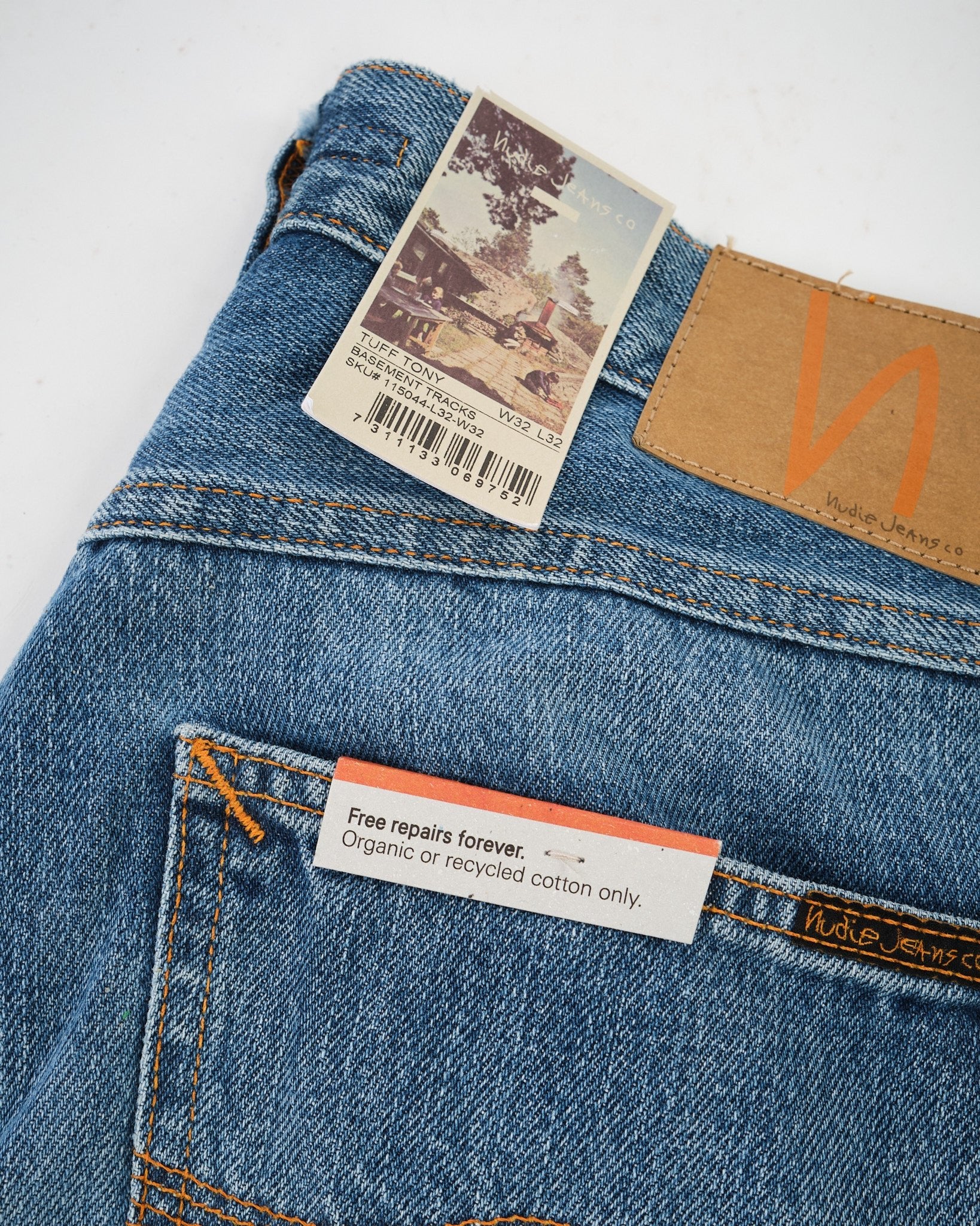 De NUDIE JEANS CO. TUFF TONY BASEMENT TRACKS zijn een meesterlijke recreatie van authentieke slijtage- en verkleuringspatronen gevonden op een goed gedragen paar Nudie Jeans. Met behulp van een geavanceerde reproductiemethode is elke natuurlijke slijtage, verkleuring en markering van de originele jeans nauwkeurig overgebracht op dit nieuwe paar.