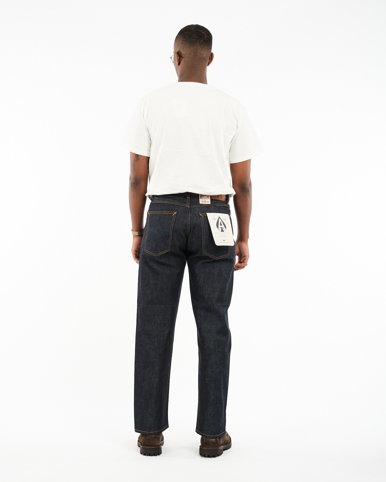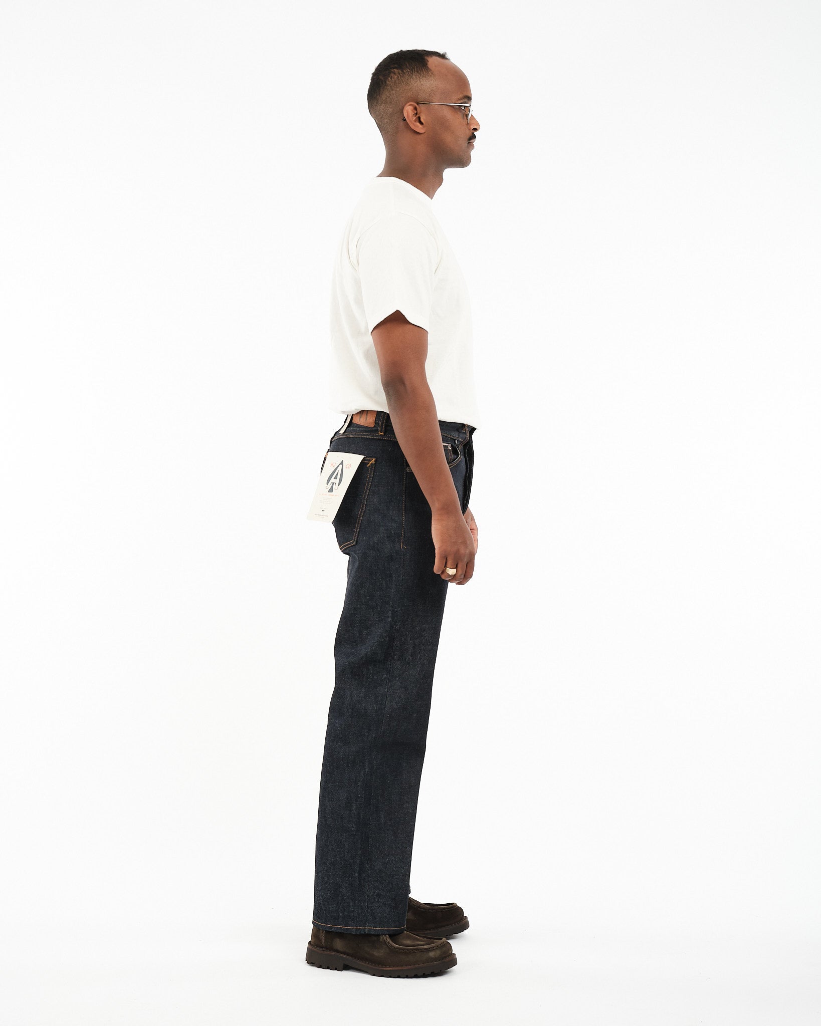 1. Premium Japans Selvage Denim: Gemaakt van 14,2 oz stijve Japanse selvage denim, bekend om zijn uitzonderlijke duurzaamheid en iconische stoftextuur.