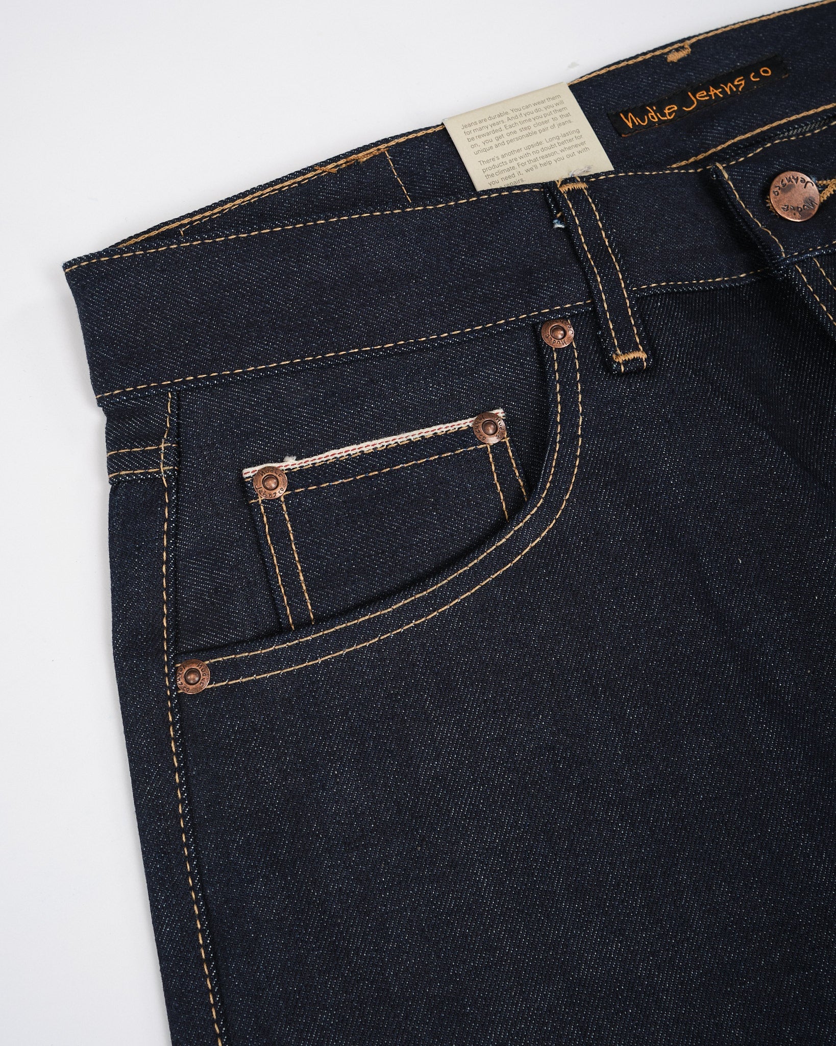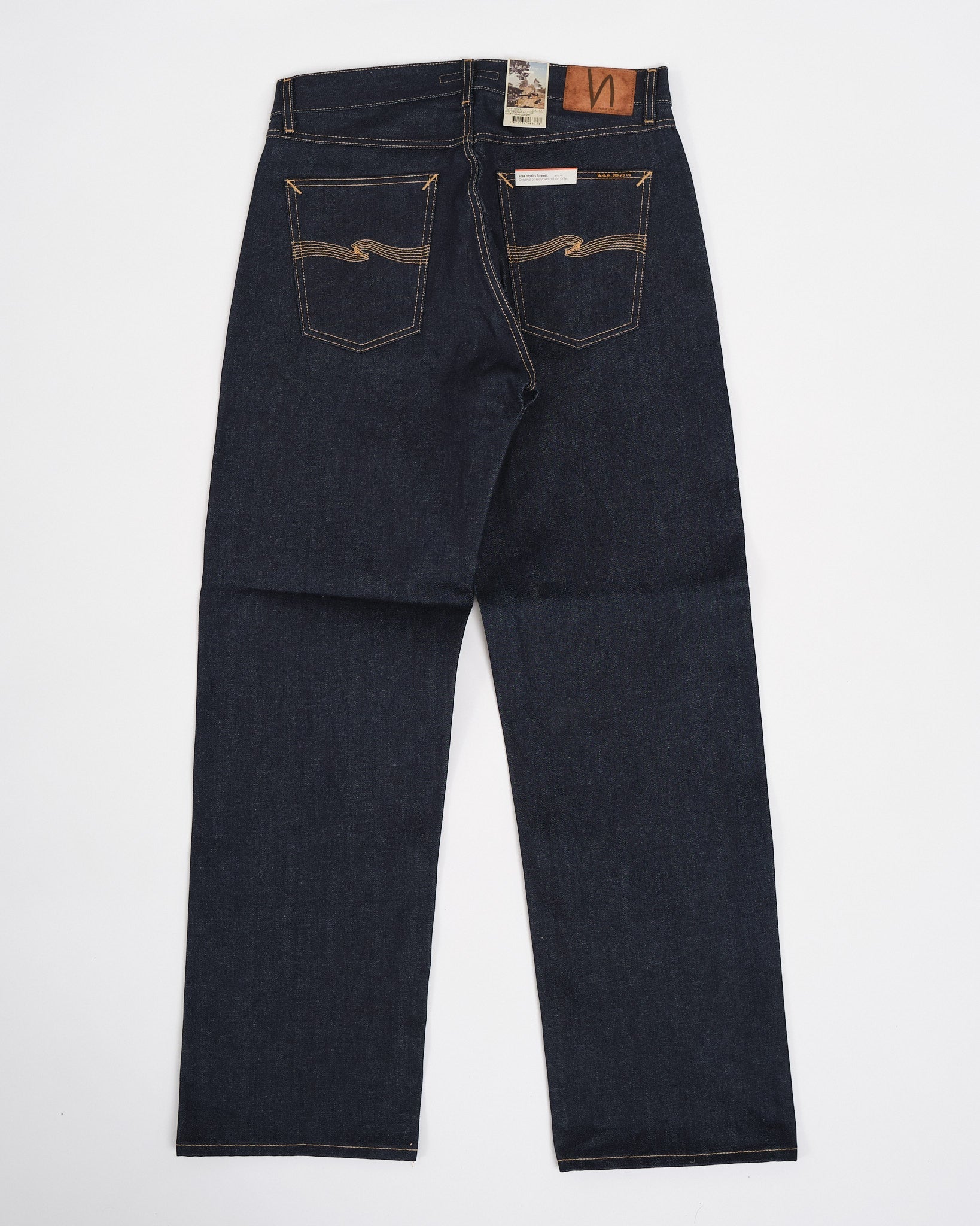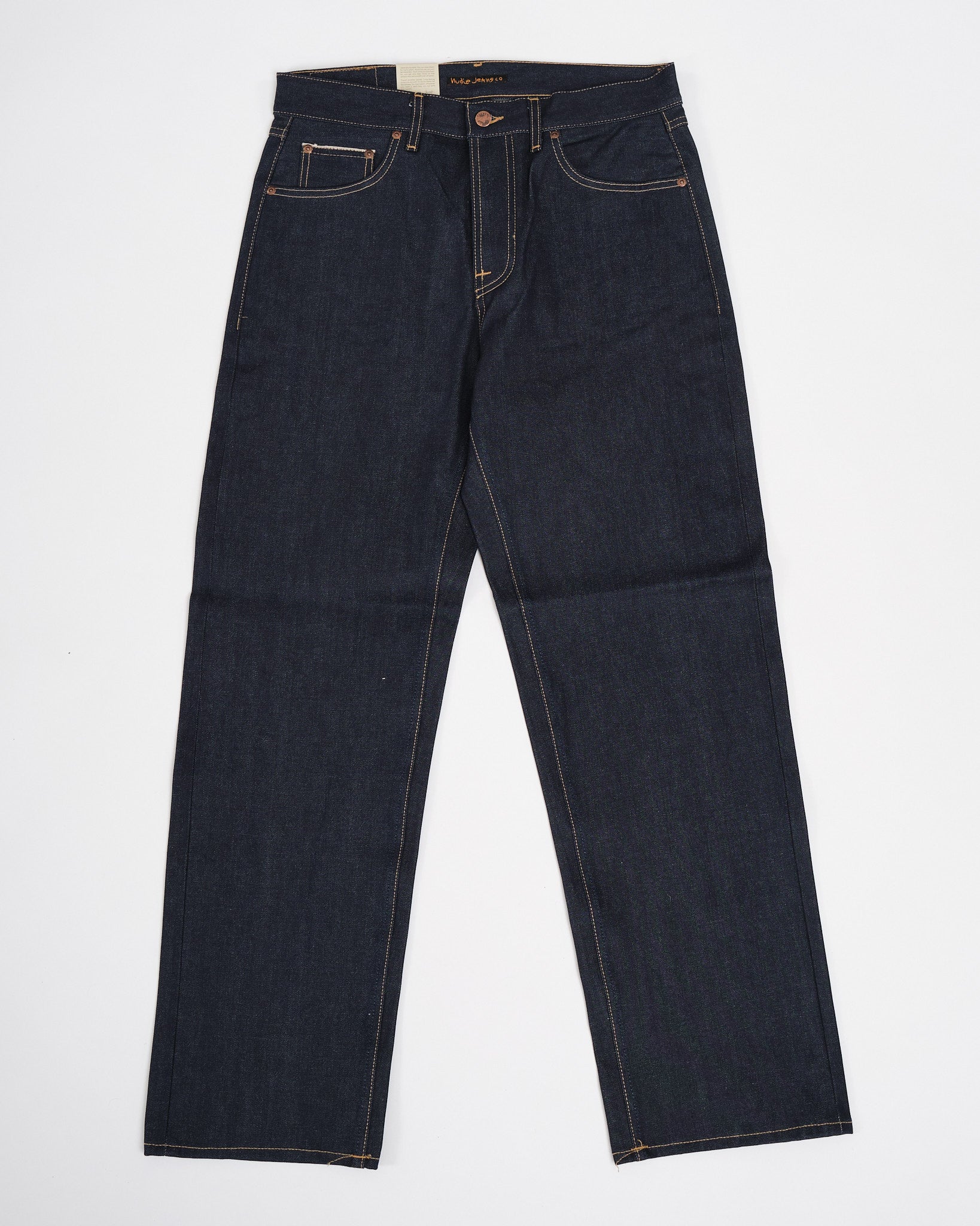Productcode: 114846 Gemaakt van 100% biologisch katoen selvage denim. Ontspannen pasvorm met een rechte pijp silhouet. Raw Dry Twilight Selvage denim voor een gepersonaliseerde patina met dragen. Zichtbare selvage rand voor klassiek denim vakmanschap. Duurzame constructie voor langdurige kwaliteit. Comfortabel en veelzijdig voor casual of nette styling. Weerspiegelt Nudie's toewijding aan duurzaamheid en verantwoorde mode. Traditioneel ontwerp met vijf zakken en versterkte stiksels. Een premium toevoeging aan elke garderobe, die de denim expertise van Nudie vertegenwoordigt.