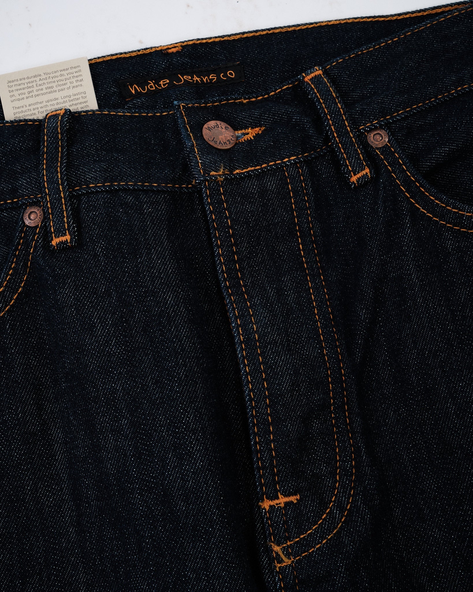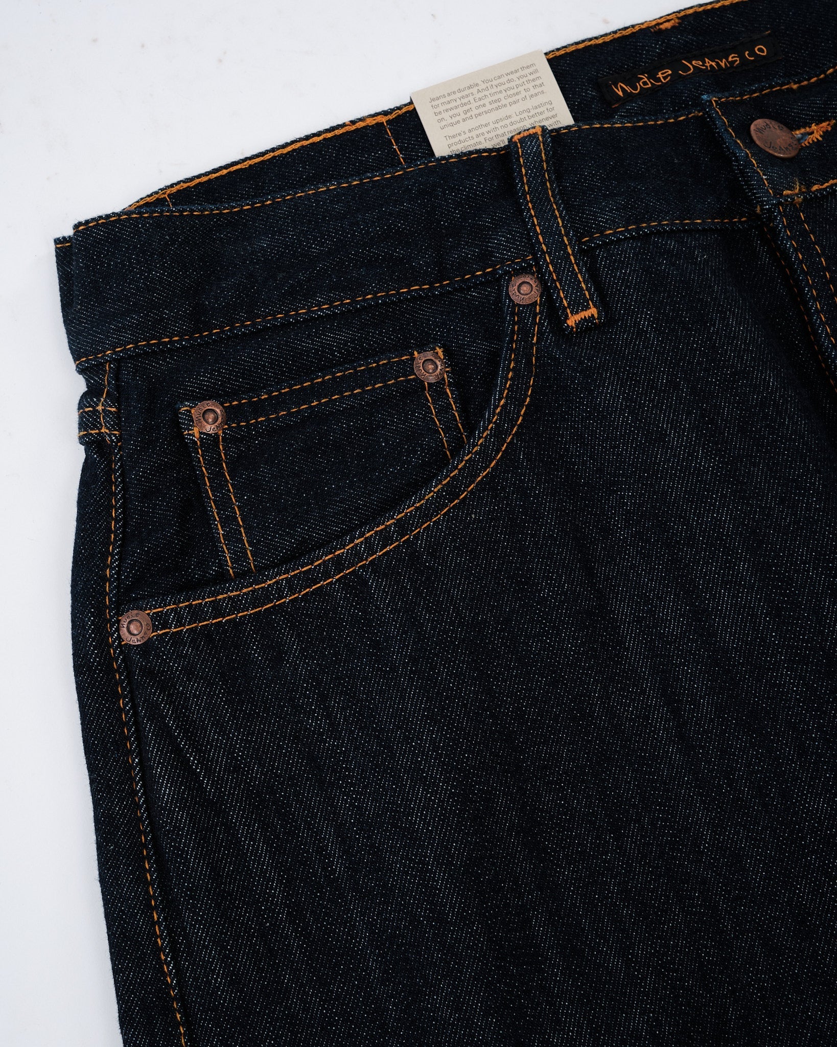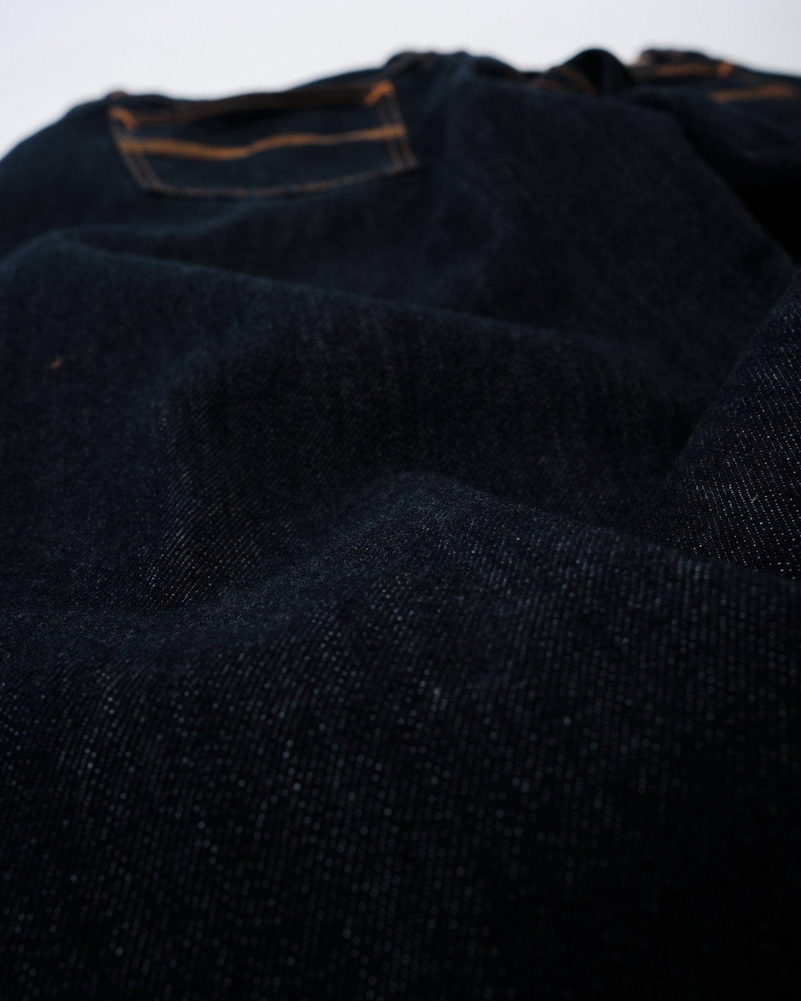 Geïnspireerd door de eenvoudige schoonheid van een enkele thuiswas van droge denim, heeft dit paar een diepblauwe wassing die natuurlijk overgaat van donkerblauw naar een rijk, roodachtig blauw na verloop van tijd. Gemaakt van vintage-stijl diep indigo denim met een medium slub karakter, ondergaat de stof een transformatie—waardoor de textuur van glad naar prachtig onregelmatig en ruw wordt.