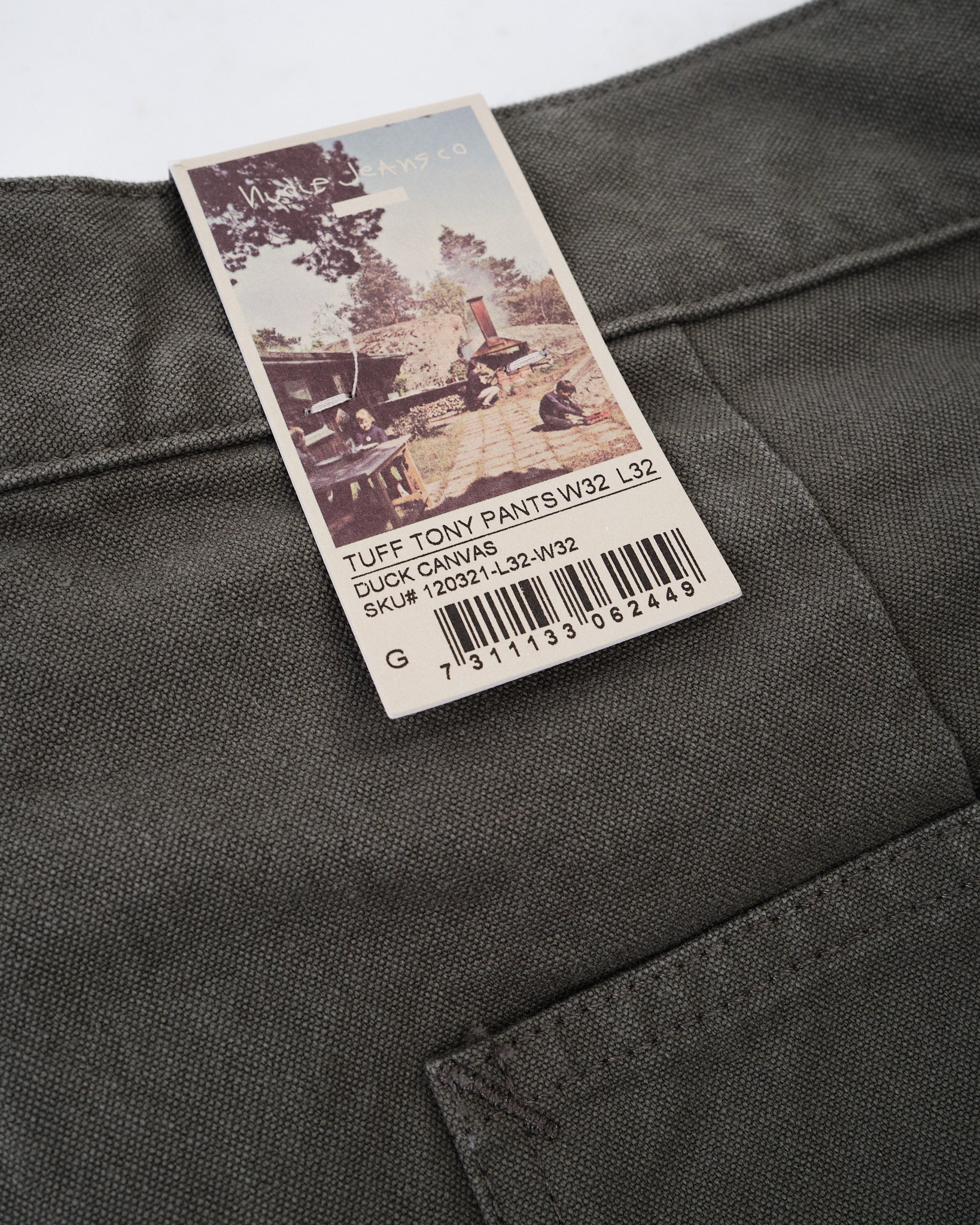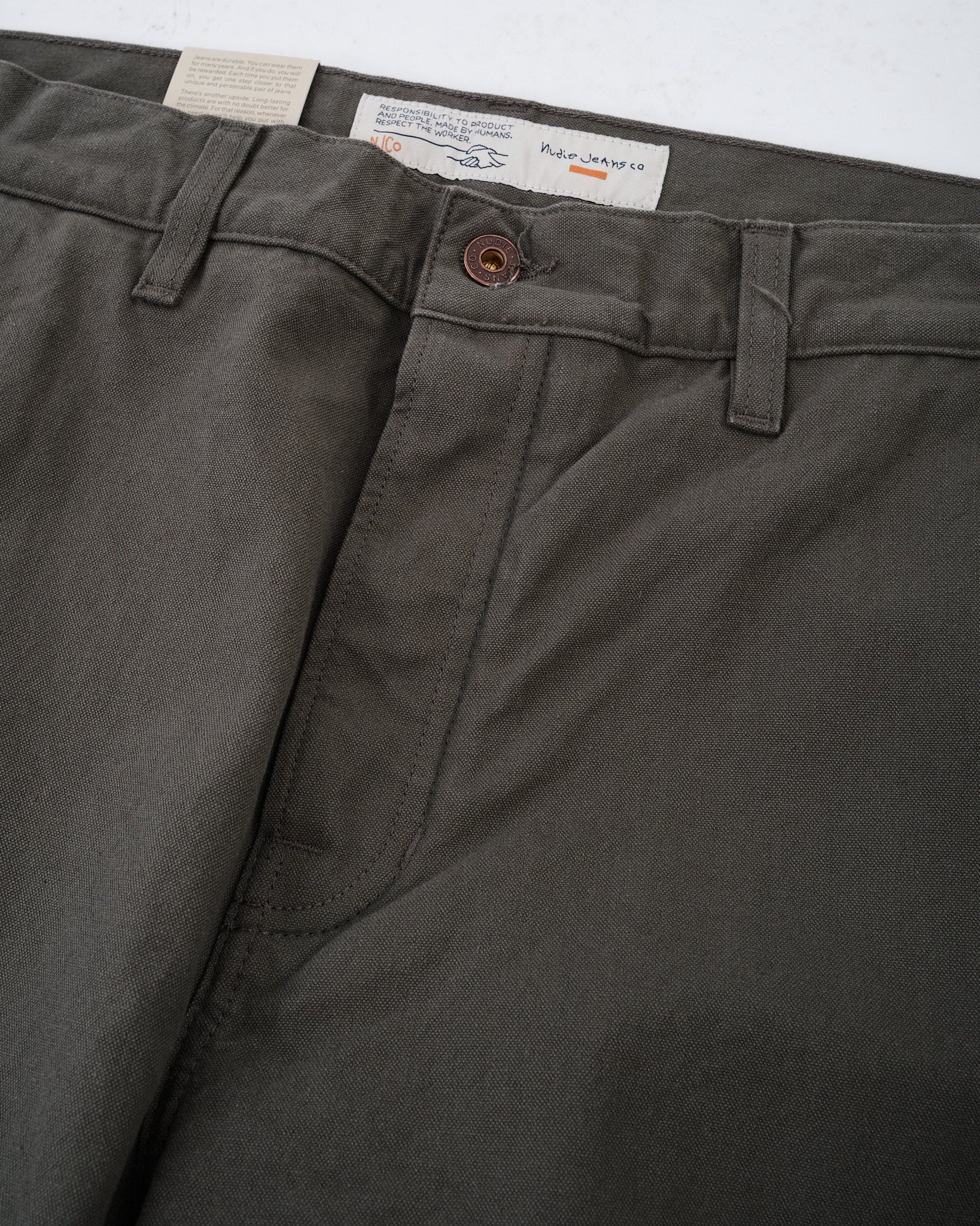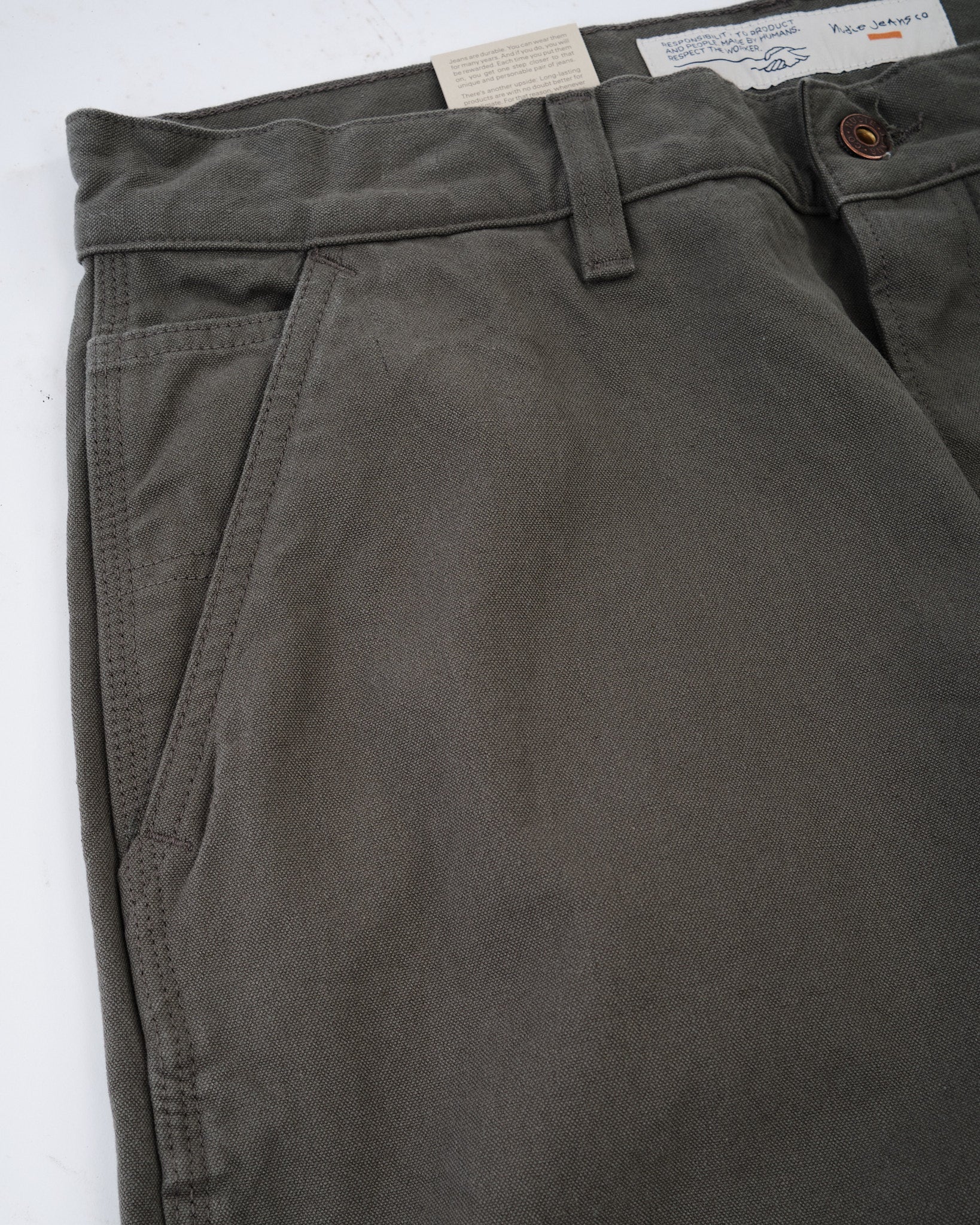 De NUDIE JEANS CO. TUFF TONY PANTS DUCK CANVAS belichamen de essentie van authentieke werkkleding, met een losse pasvorm, wijde pijpen en een comfortabele hoge taille. Geïnspireerd door vintage jachtkleding uit het midden van de 20e eeuw, hebben deze broeken tonaal stiksel en koperen "Donut" knopen, wat verfijnde werkkleding esthetiek toevoegt aan een tijdloze silhouet.