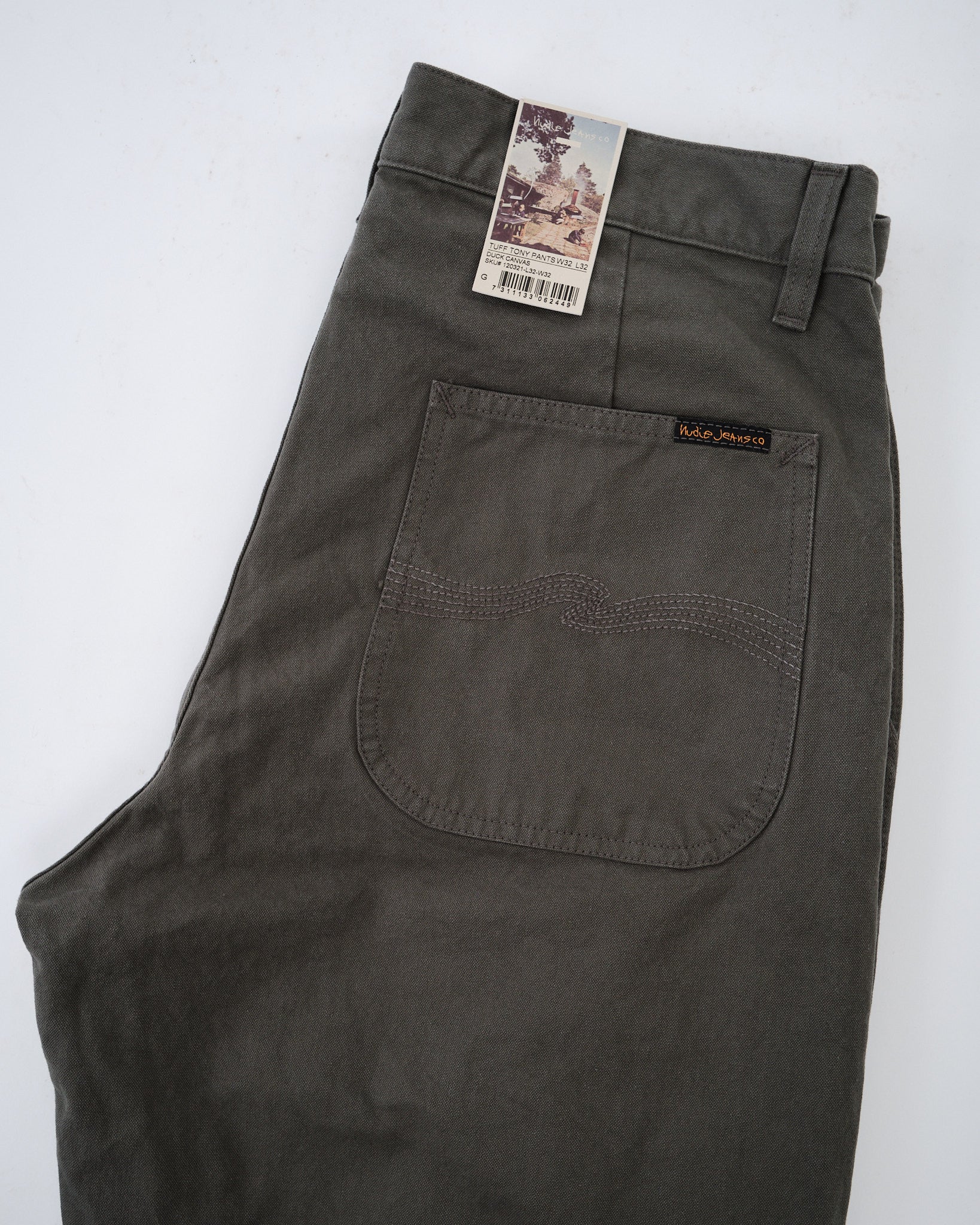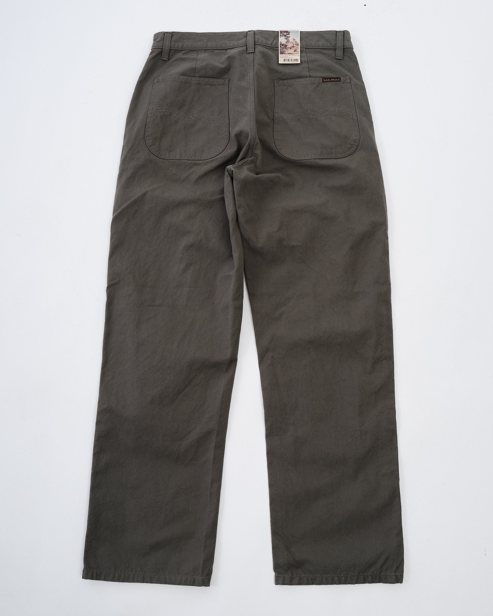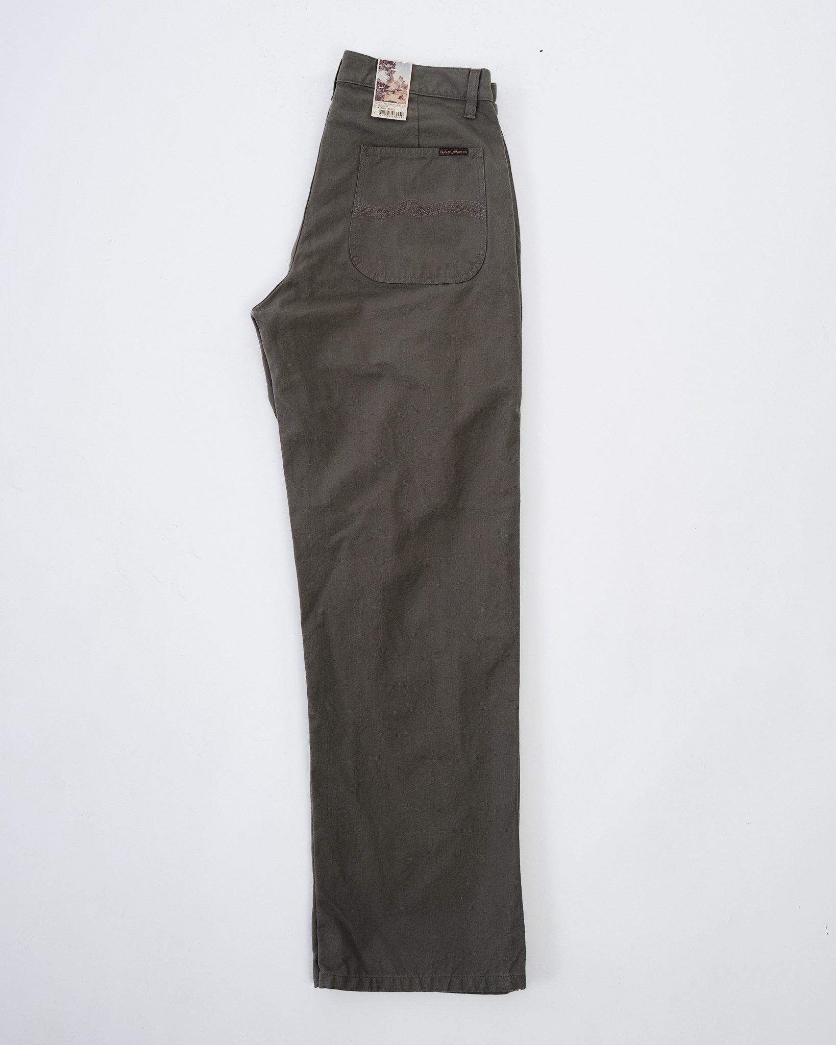 De NUDIE JEANS CO. TUFF TONY PANTS DUCK CANVAS belichamen de essentie van authentieke werkkleding, met een losse pasvorm, wijde pijpen en een comfortabele hoge taille. Geïnspireerd door vintage jachtkleding uit het midden van de 20e eeuw, hebben deze broeken tonaal stiksel en koperen "Donut" knopen, wat verfijnde werkkleding esthetiek toevoegt aan een tijdloze silhouet.