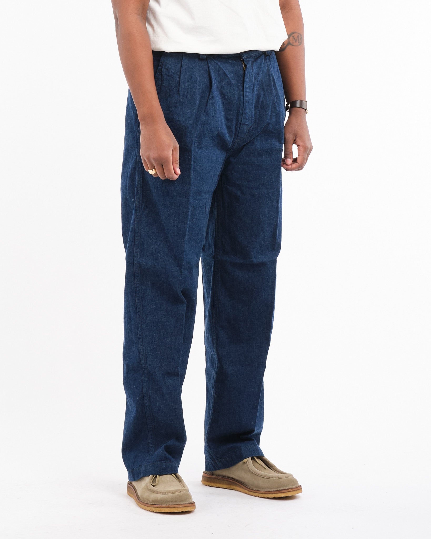 Uit uw individualiteit met Orslows TWO TUCK WIDE DENIM WIDE TROUSERS ONE YEAR WASH. Handgemaakt in Japan bieden deze broeken een pasvorm met een uniek breed ontwerp dat elegant versmalt aan de onderkant. Gemaakt van 9oz Japans denim tonen deze broeken een zachte indigo tint verkregen door een eenjarige wastechiek, waardoor ze een natuurlijk gedragen uiterlijk hebben, direct uit de verpakking.