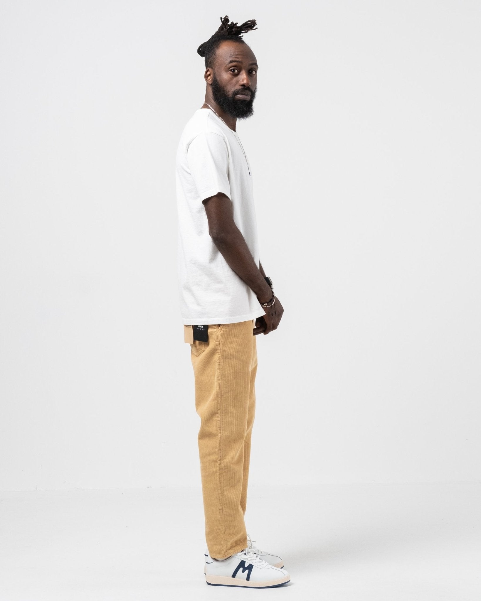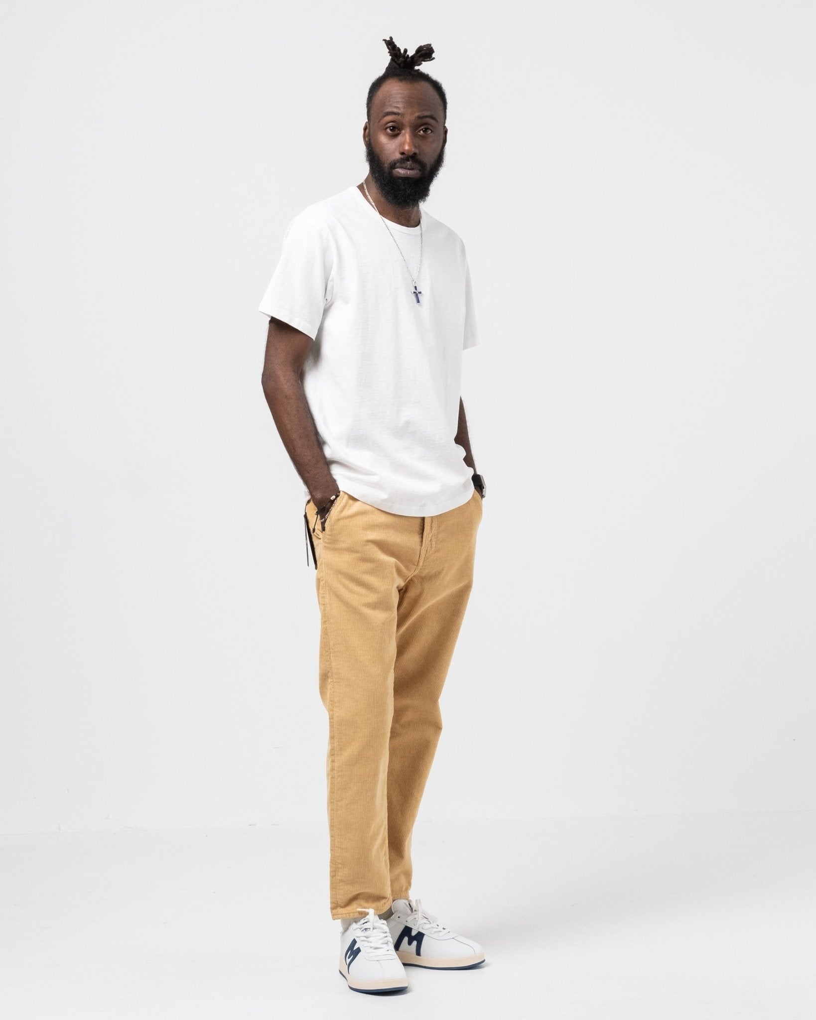 Universe Pant Corduroy Curry van Edwin Europe. Een regelmatig toelopende, verkorte broek met hoge taille. Gemaakt van een prachtige 11 wales corduroy van 100% katoen. Gemaakt in Tunesië.