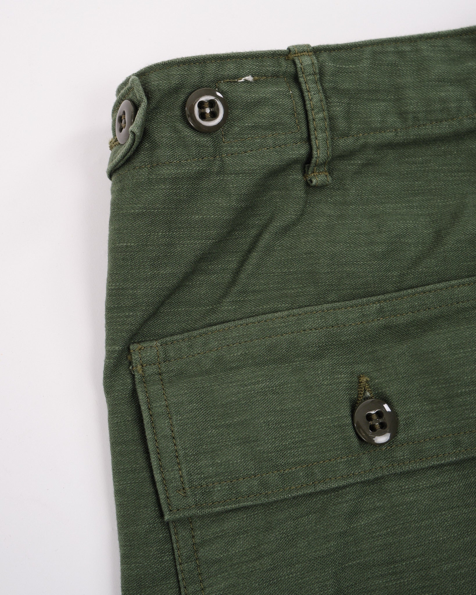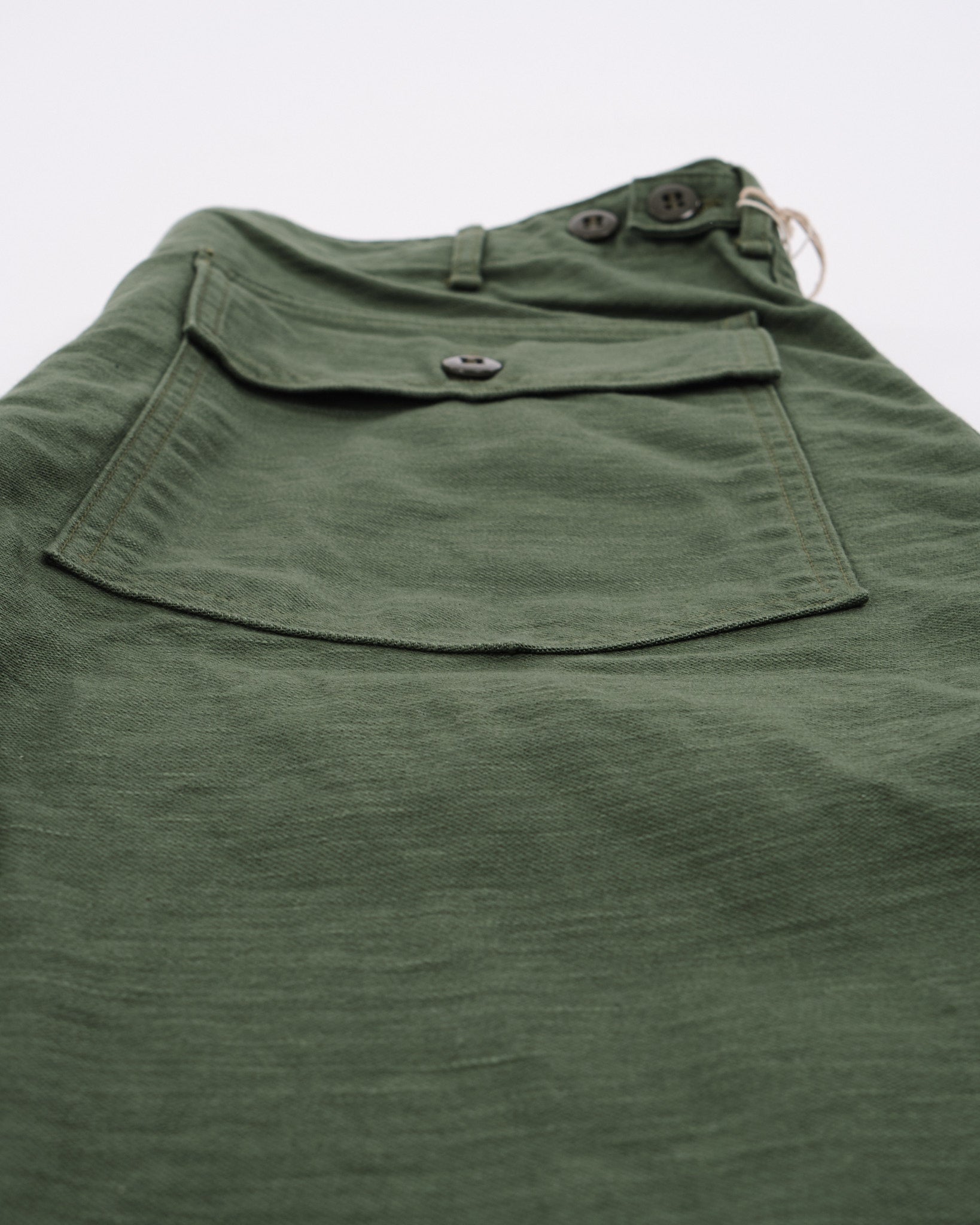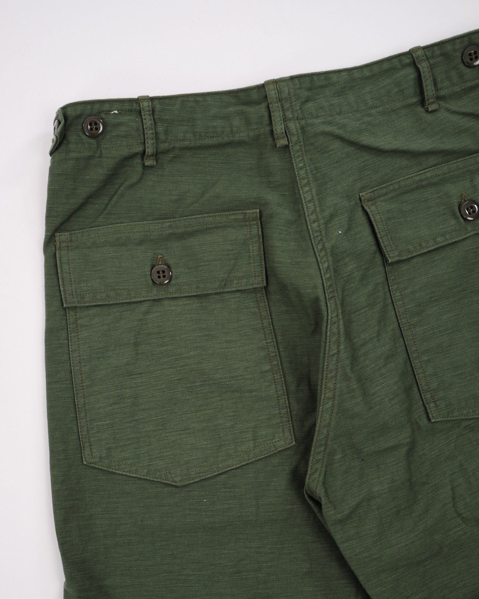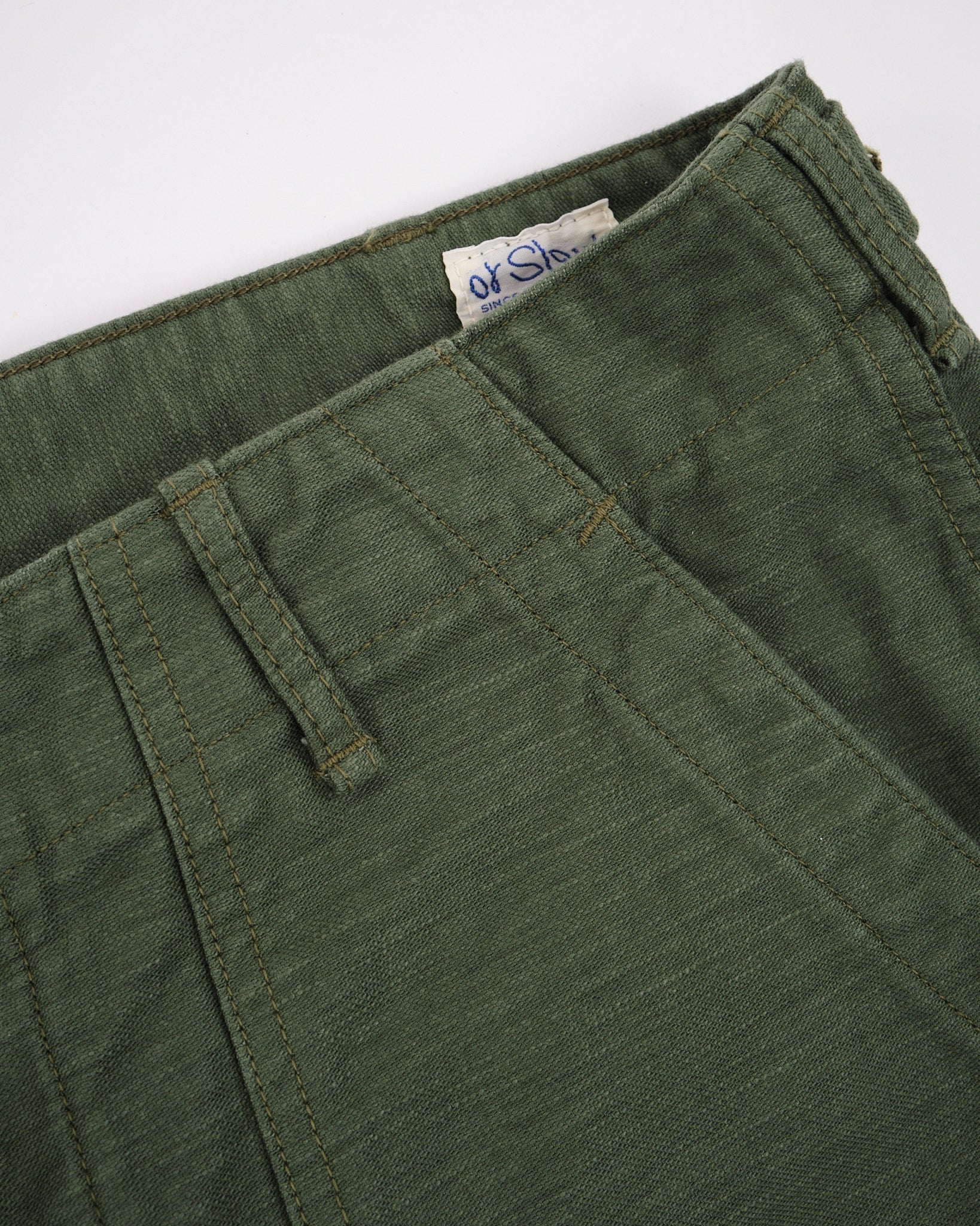 Maak kennis met de tijdloze orSlow US ARMY FATIGUE PANTS REGULAR FIT GREEN, een must-have in de wereld van topkleding, bekend om hun allure en ongeëvenaard comfort. Gemaakt met een Reverse Sateen Fabric bieden deze broeken een zachte en gladde aanraking dankzij hun kenmerkende slubtextuur die van dichtbij betoverend is. Hoewel ze als zwaargewicht worden geclassificeerd, zijn ze uitzonderlijk zacht voor de huid, waardoor ze perfect zijn voor luxe. Elk ingewikkeld detail, van de zijtab taille tot de voorste opgestikte zakken en talrijke knoopsluitingen, brengt hulde aan het originele US Army ontwerp dat als inspiratie diende. Deze broeken met een rechte pijp zijn niet zomaar een kledingstuk; ze belichamen geschiedenis. Ze zijn zorgvuldig voorgewassen en versierd met periodeknopen en op maat geweven labels om authenticiteit en comfort te waarborgen. Met zorg vervaardigd in Osaka, Japan, garanderen deze vermoeidheidsbroeken een blijvende pijler in je garderobe te worden. Als je erin slaagt ze te bemachtigen terwijl ze nog op voorraad zijn.