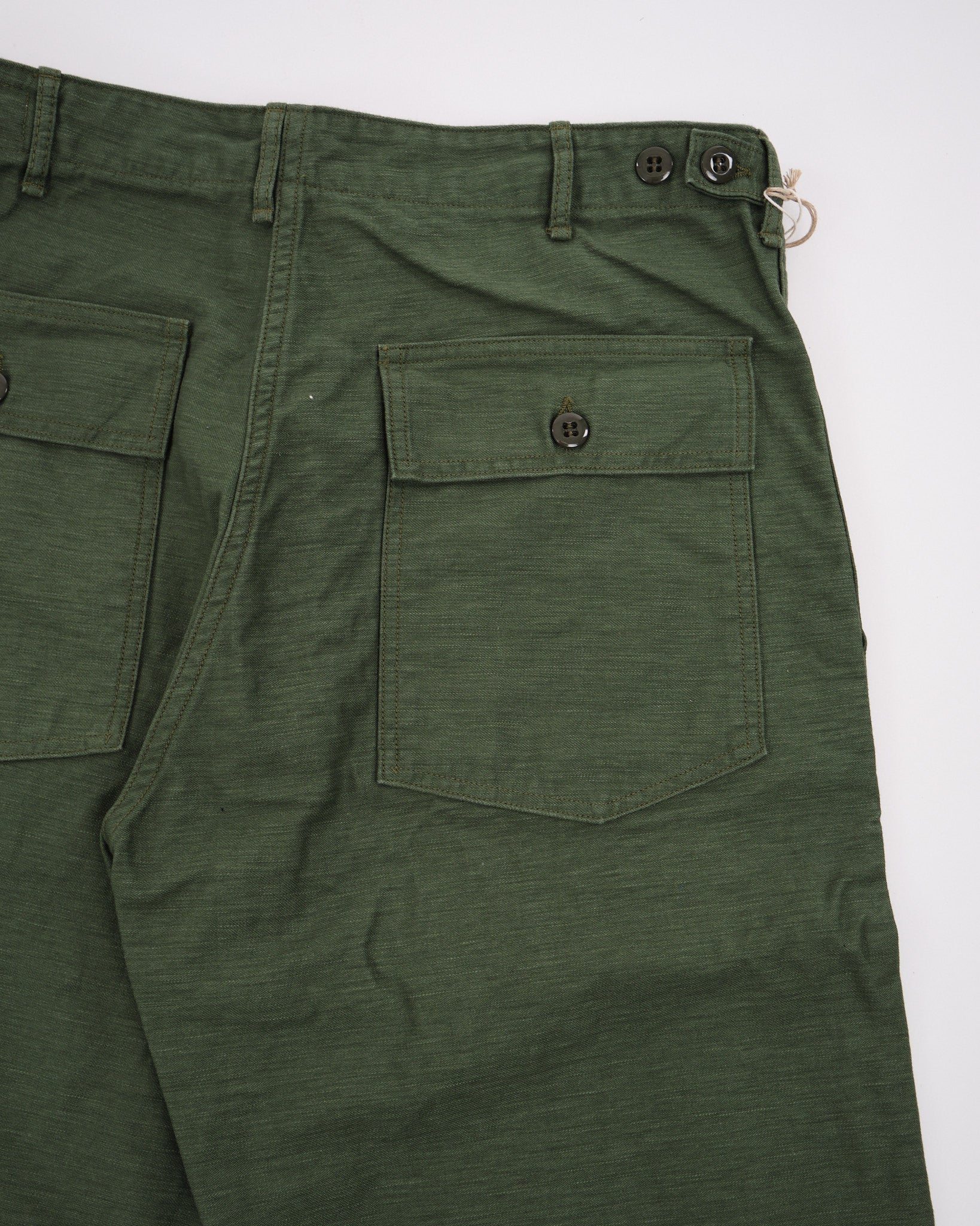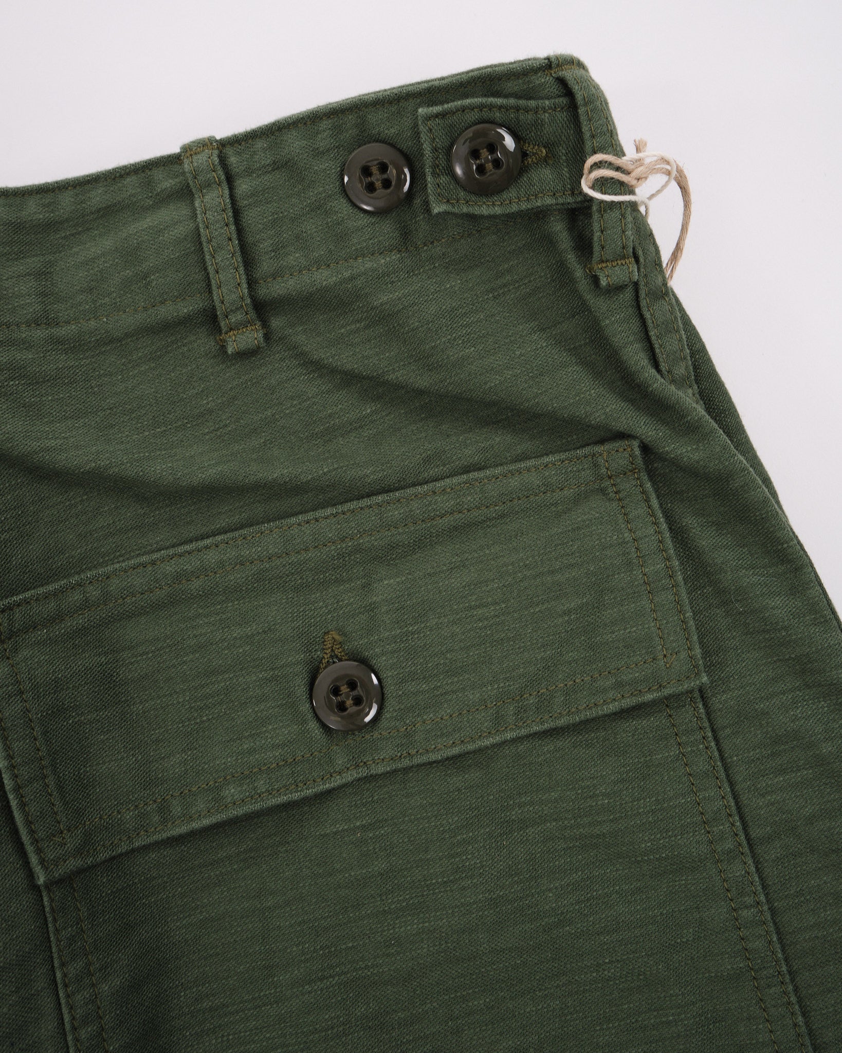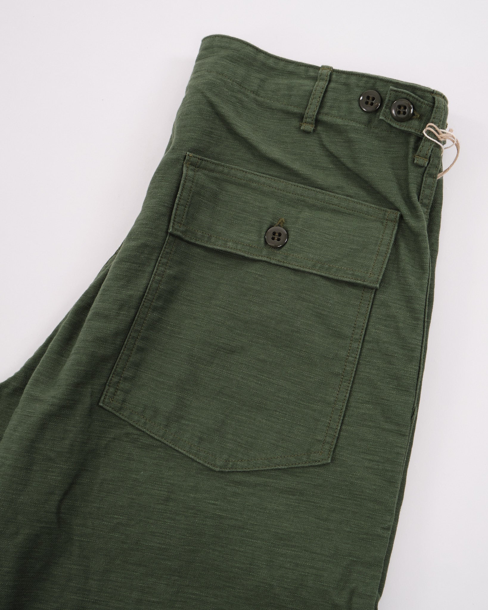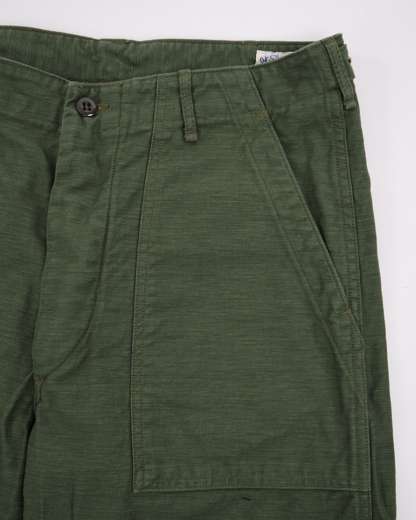 Maak kennis met de tijdloze orSlow US ARMY FATIGUE PANTS REGULAR FIT GREEN, een must-have in de wereld van topkleding, bekend om hun allure en ongeëvenaard comfort. Gemaakt met een Reverse Sateen Fabric bieden deze broeken een zachte en gladde aanraking dankzij hun kenmerkende slubtextuur die van dichtbij betoverend is. Hoewel ze als zwaargewicht worden geclassificeerd, zijn ze uitzonderlijk zacht voor de huid, waardoor ze perfect zijn voor luxe. Elk ingewikkeld detail, van de zijtab taille tot de voorste opgestikte zakken en talrijke knoopsluitingen, brengt hulde aan het originele US Army ontwerp dat als inspiratie diende. Deze broeken met een rechte pijp zijn niet zomaar een kledingstuk; ze belichamen geschiedenis. Ze zijn zorgvuldig voorgewassen en versierd met periodeknopen en op maat geweven labels om authenticiteit en comfort te waarborgen. Met zorg vervaardigd in Osaka, Japan, garanderen deze vermoeidheidsbroeken een blijvende pijler in je garderobe te worden. Als je erin slaagt ze te bemachtigen terwijl ze nog op voorraad zijn.