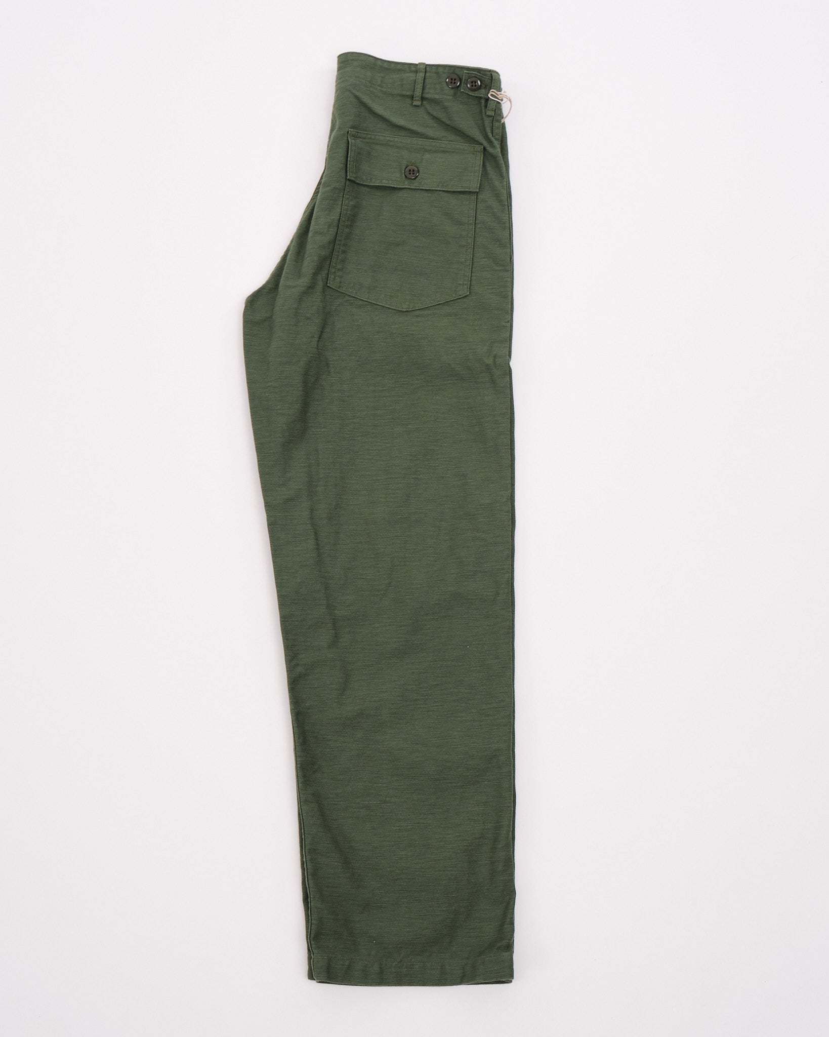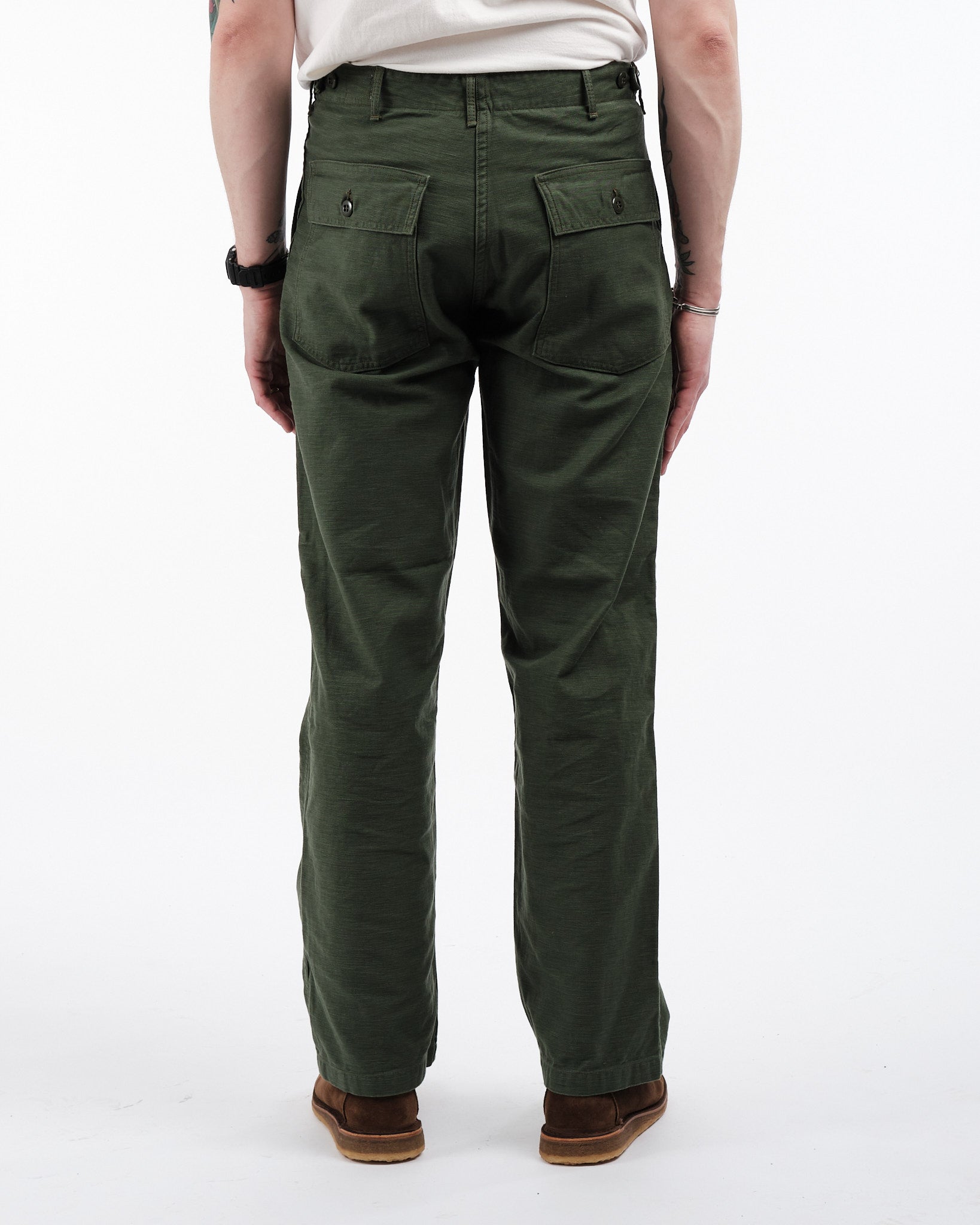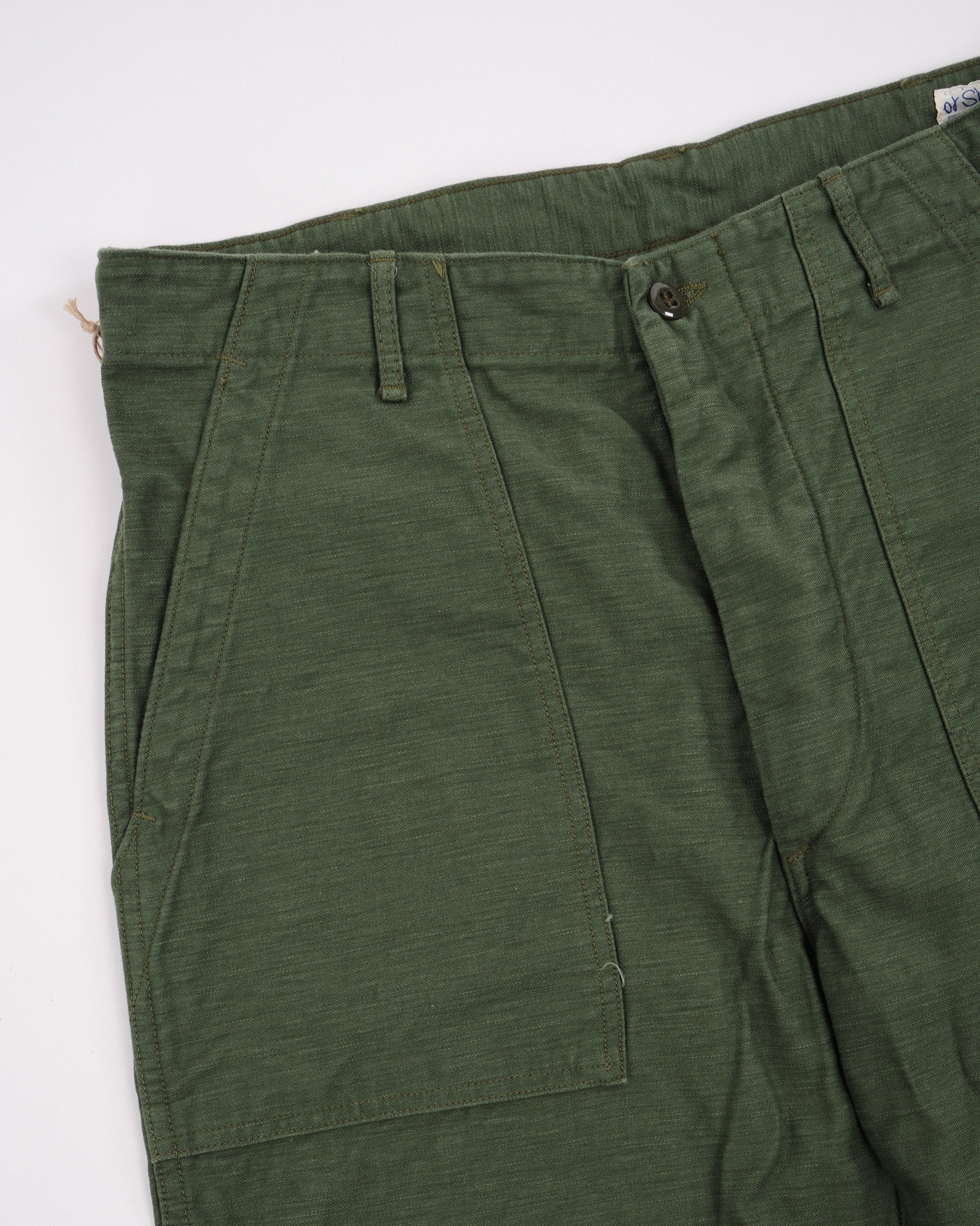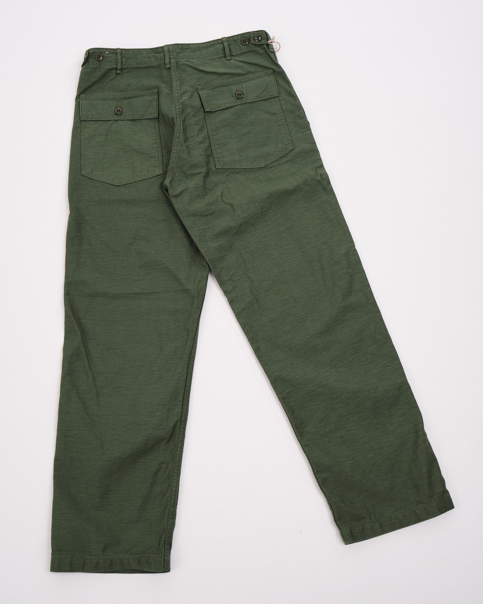 Maak kennis met de tijdloze orSlow US ARMY FATIGUE PANTS REGULAR FIT GREEN, een must-have in de wereld van topkleding, bekend om hun allure en ongeëvenaard comfort. Gemaakt met een Reverse Sateen Fabric bieden deze broeken een zachte en gladde aanraking dankzij hun kenmerkende slubtextuur die van dichtbij betoverend is. Hoewel ze als zwaargewicht worden geclassificeerd, zijn ze uitzonderlijk zacht voor de huid, waardoor ze perfect zijn voor luxe. Elk ingewikkeld detail, van de zijtab taille tot de voorste opgestikte zakken en talrijke knoopsluitingen, brengt hulde aan het originele US Army ontwerp dat als inspiratie diende. Deze broeken met een rechte pijp zijn niet zomaar een kledingstuk; ze belichamen geschiedenis. Ze zijn zorgvuldig voorgewassen en versierd met periodeknopen en op maat geweven labels om authenticiteit en comfort te waarborgen. Met zorg vervaardigd in Osaka, Japan, garanderen deze vermoeidheidsbroeken een blijvende pijler in je garderobe te worden. Als je erin slaagt ze te bemachtigen terwijl ze nog op voorraad zijn.
