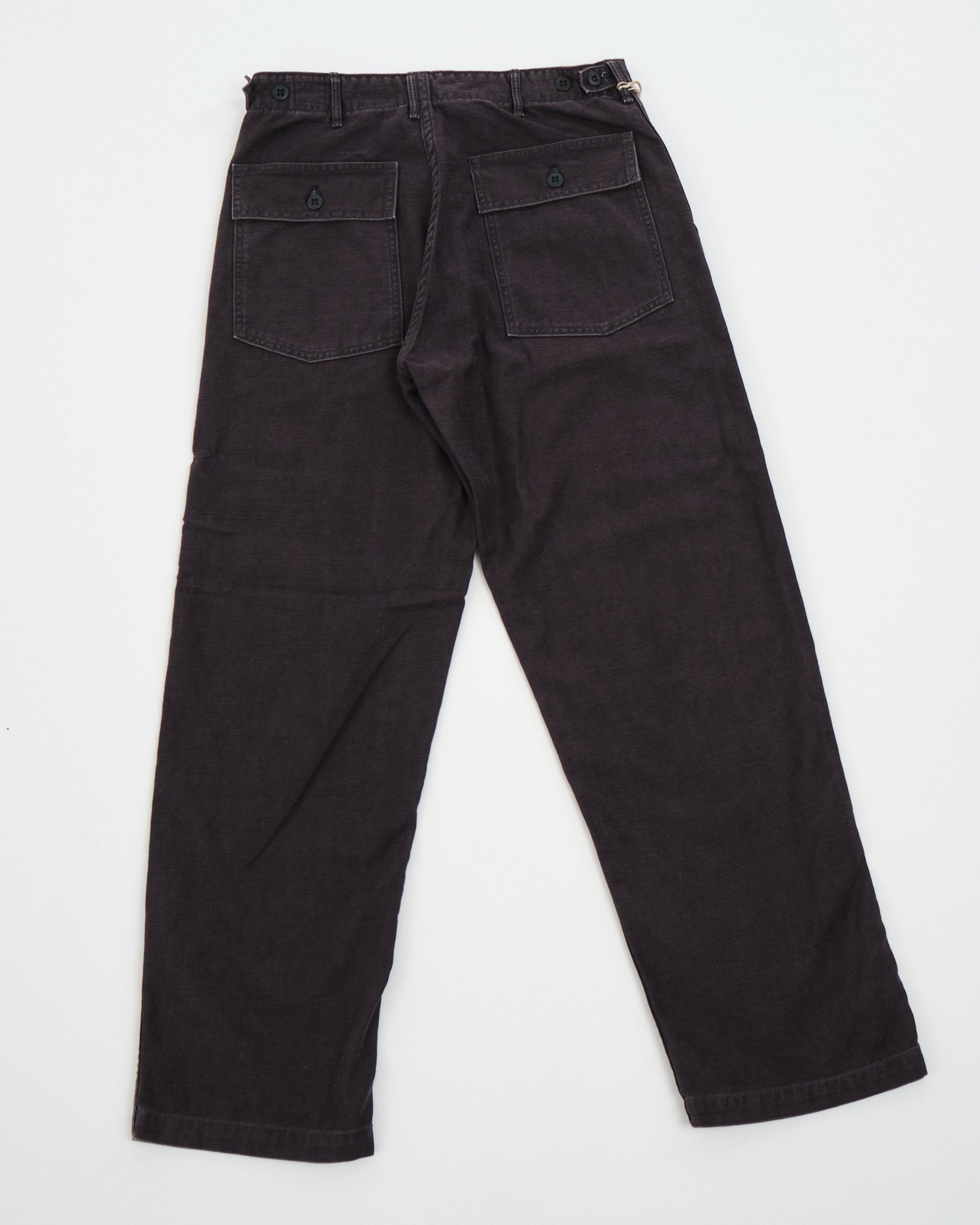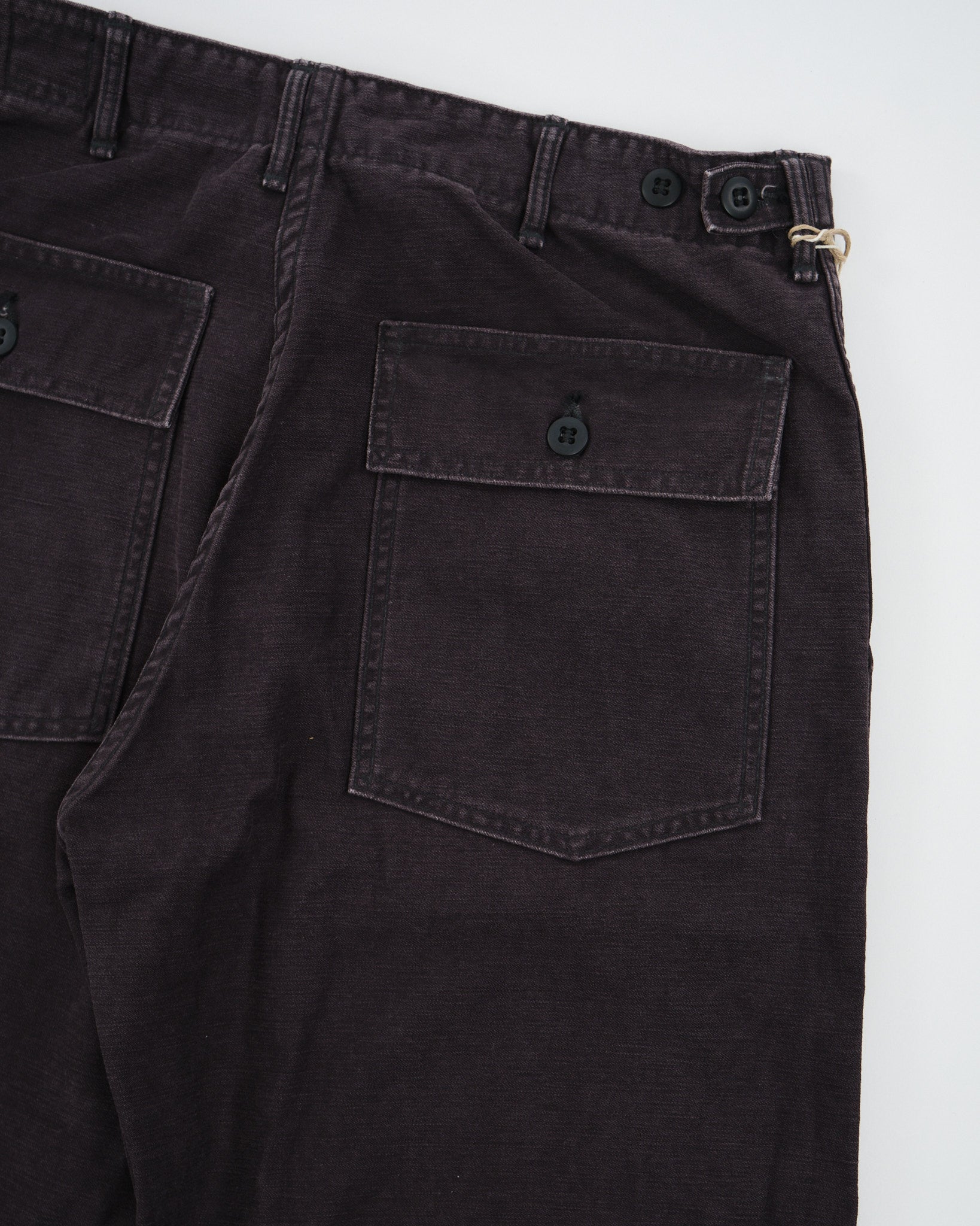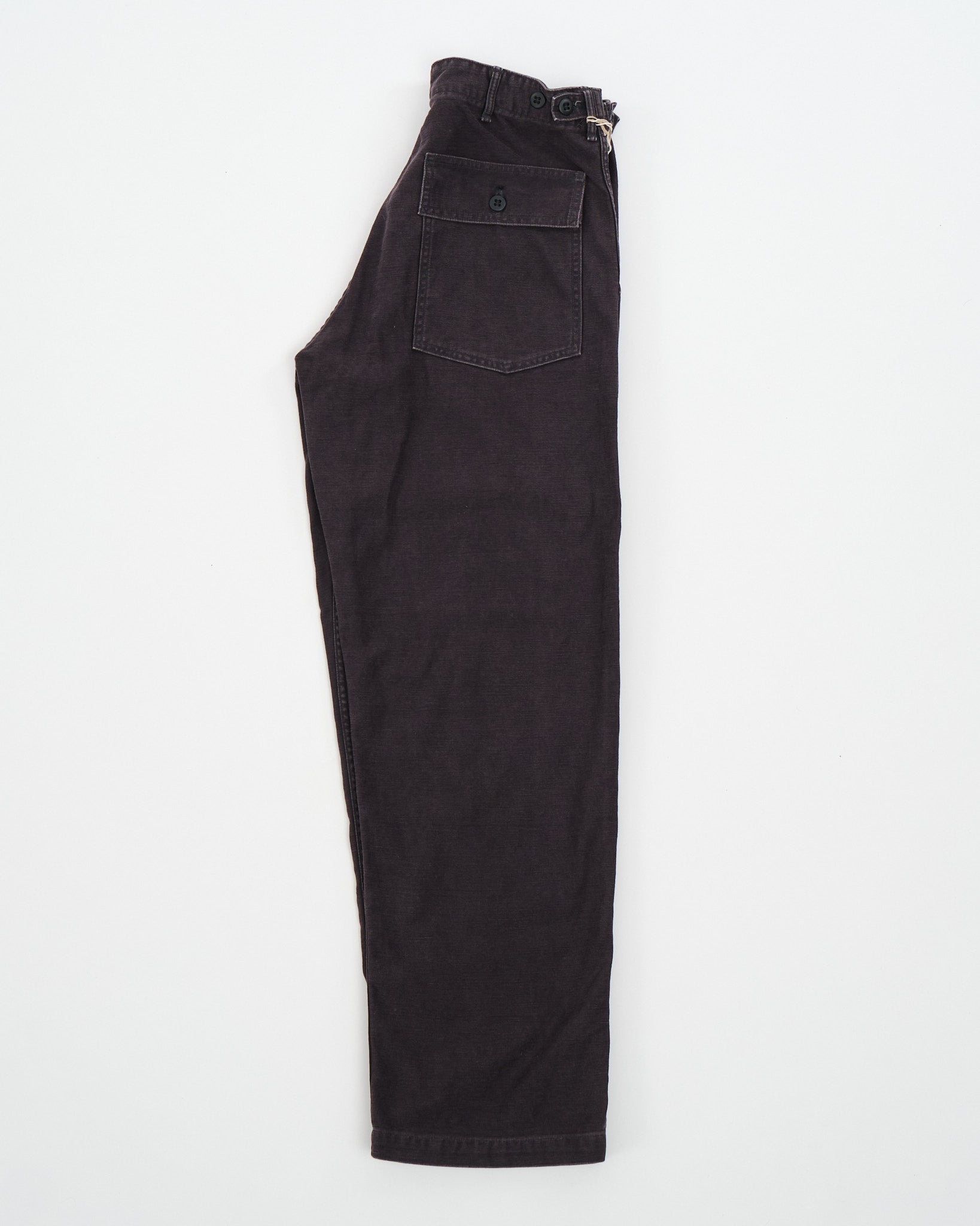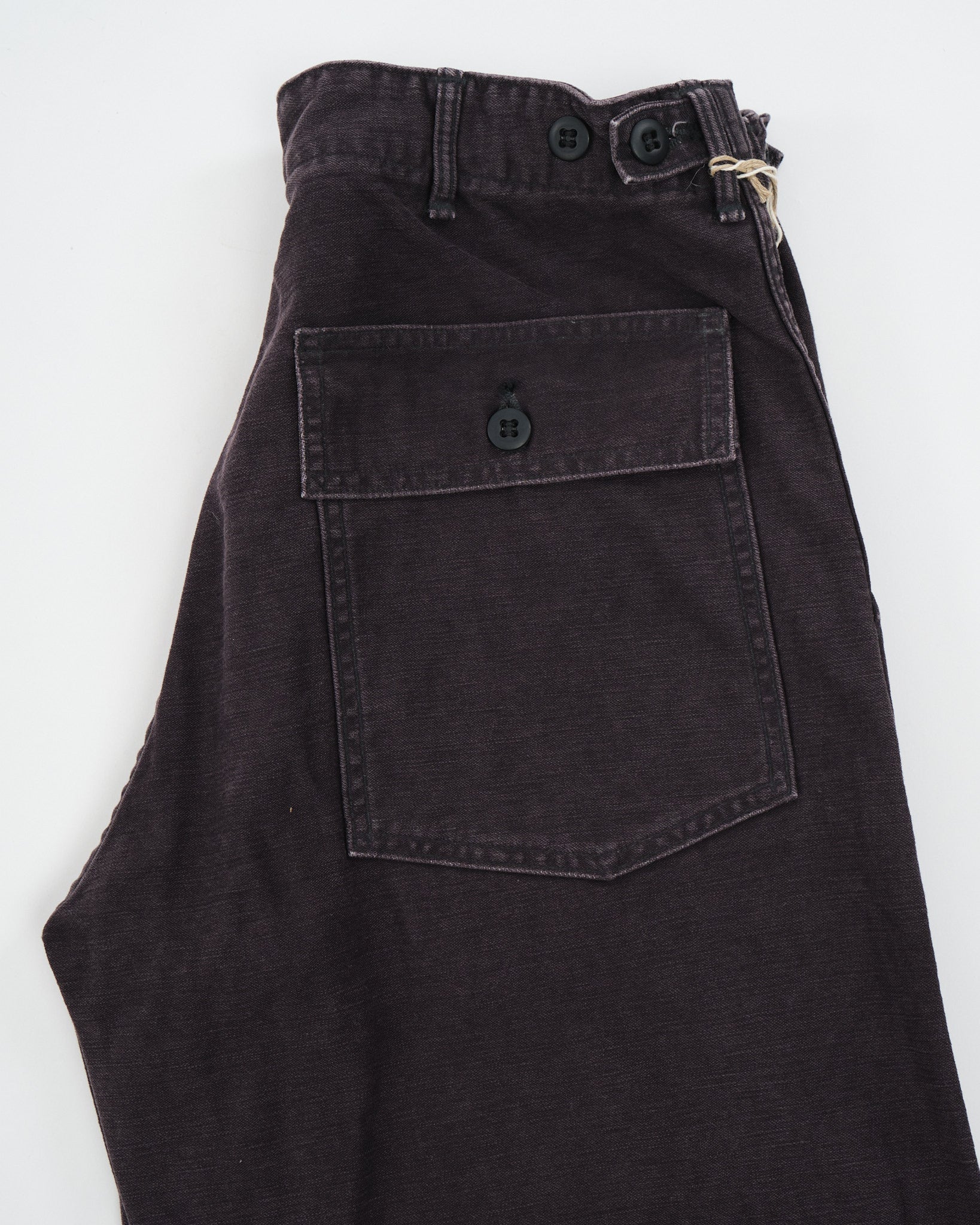 De orSlow US Army Fatigue Pants Regular Fit in Black Stone zijn een hedendaagse hommage aan klassieke militaire werkkleding, die duurzaamheid combineert met tijdloze stijl. Vervaardigd uit 100% katoen reverse sateen stof, bieden deze broeken een unieke textuur en robuuste constructie. De reguliere pasvorm zorgt voor comfort en gemak van beweging, terwijl de verstelbare taille tabs een aanpasbare pasvorm mogelijk maken. Met twee diepe zijpatch zakken en achterzakken met flap sluiting, bieden ze praktische opbergoplossingen. De steengewassen zwarte kleur voegt een vintage aantrekkingskracht toe, waardoor ze veelzijdig zijn voor verschillende outfits. Gemaakt in Japan, weerspiegelen deze broeken orSlow's toewijding aan kwaliteitsvakmanschap.
