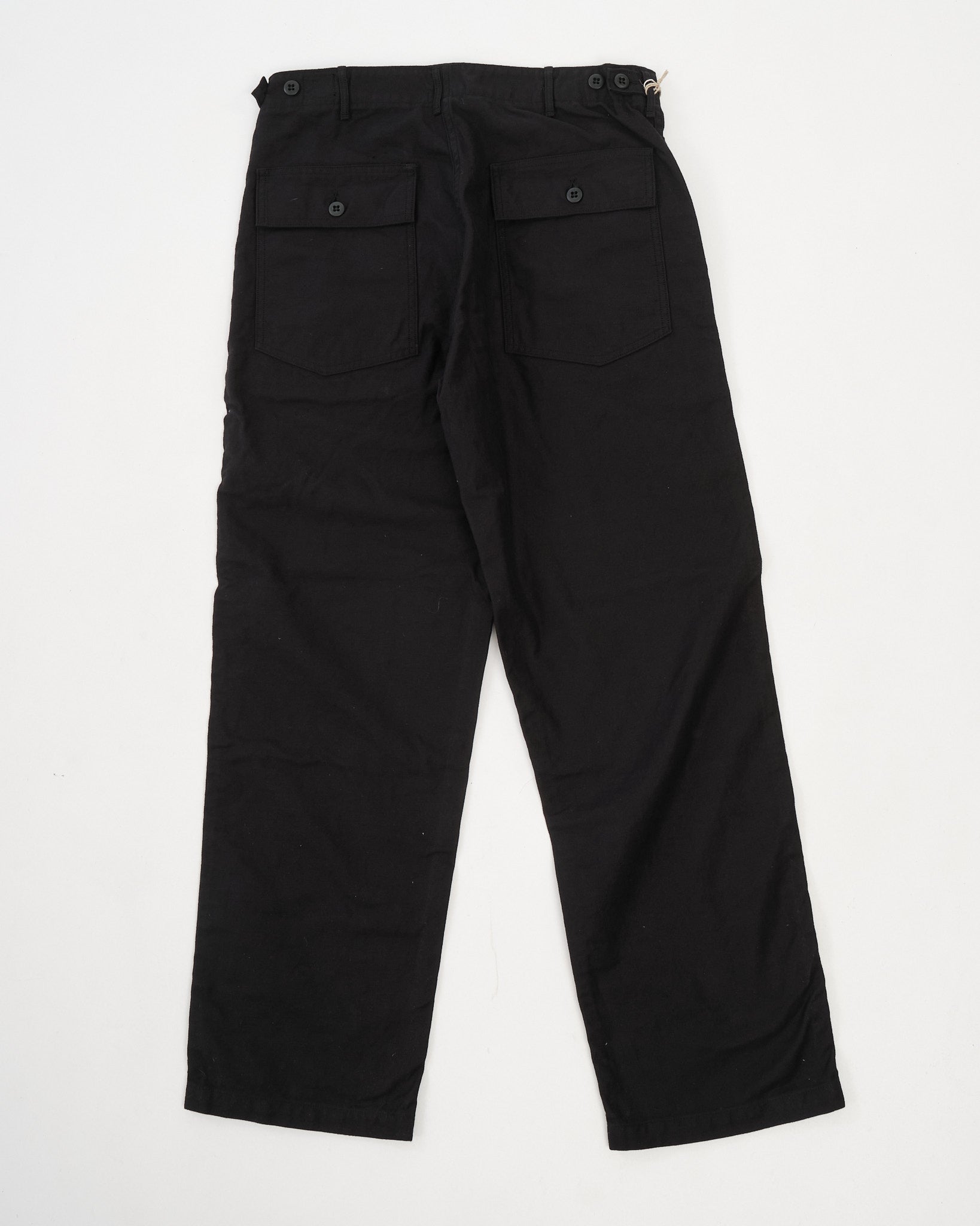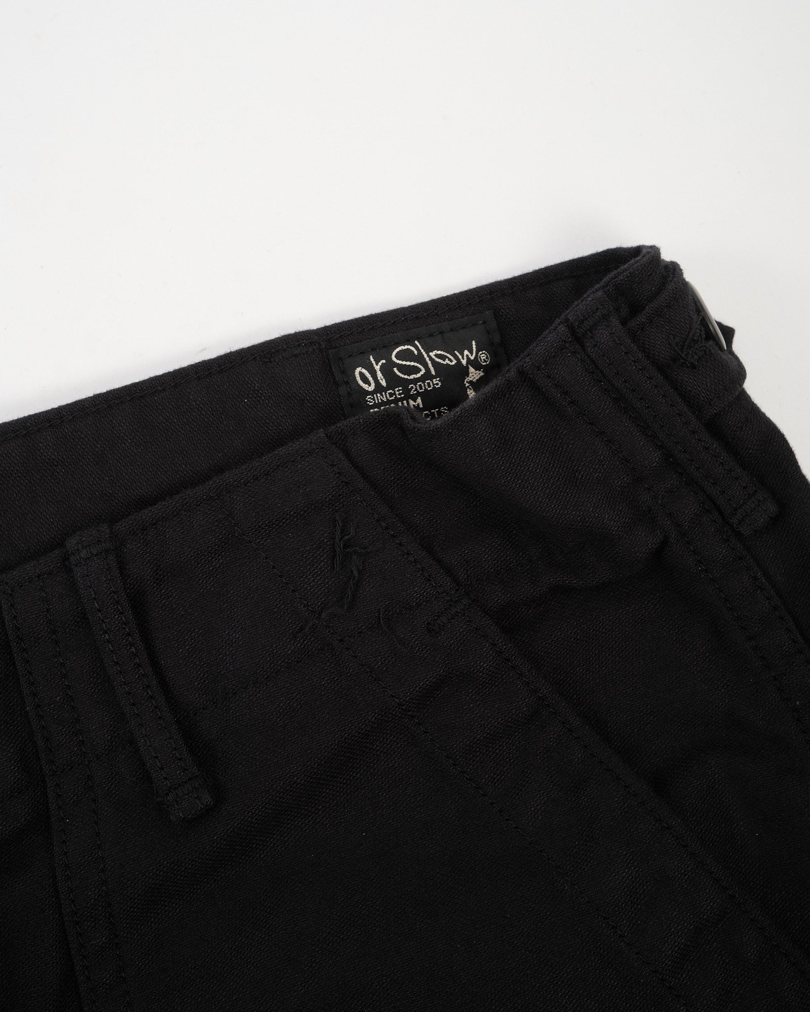 De orSlow US Army Fatigue Pants Regular Fit in Zwart zijn geïnspireerd door klassieke militaire ontwerpen en vervaardigd met een moderne touch. Gemaakt in Japan van duurzaam katoenen stof, bieden deze broeken een veelzijdige en comfortabele reguliere pasvorm die perfect is voor dagelijks gebruik. Met authentieke militaire stijldetails, inclusief grote voorste opgestikte zakken, achterzakken met flap en verstevigde stiksels, combineren deze vermoeidheidsbroeken functionaliteit en tijdloos ontwerp. De strakke zwarte kleur voegt veelzijdigheid toe, waardoor ze geschikt zijn voor zowel casual als verfijnde outfits. Gebouwd om lang mee te gaan, belichamen deze broeken de toewijding van orSlow aan langzaam gemaakte vakmanschap.