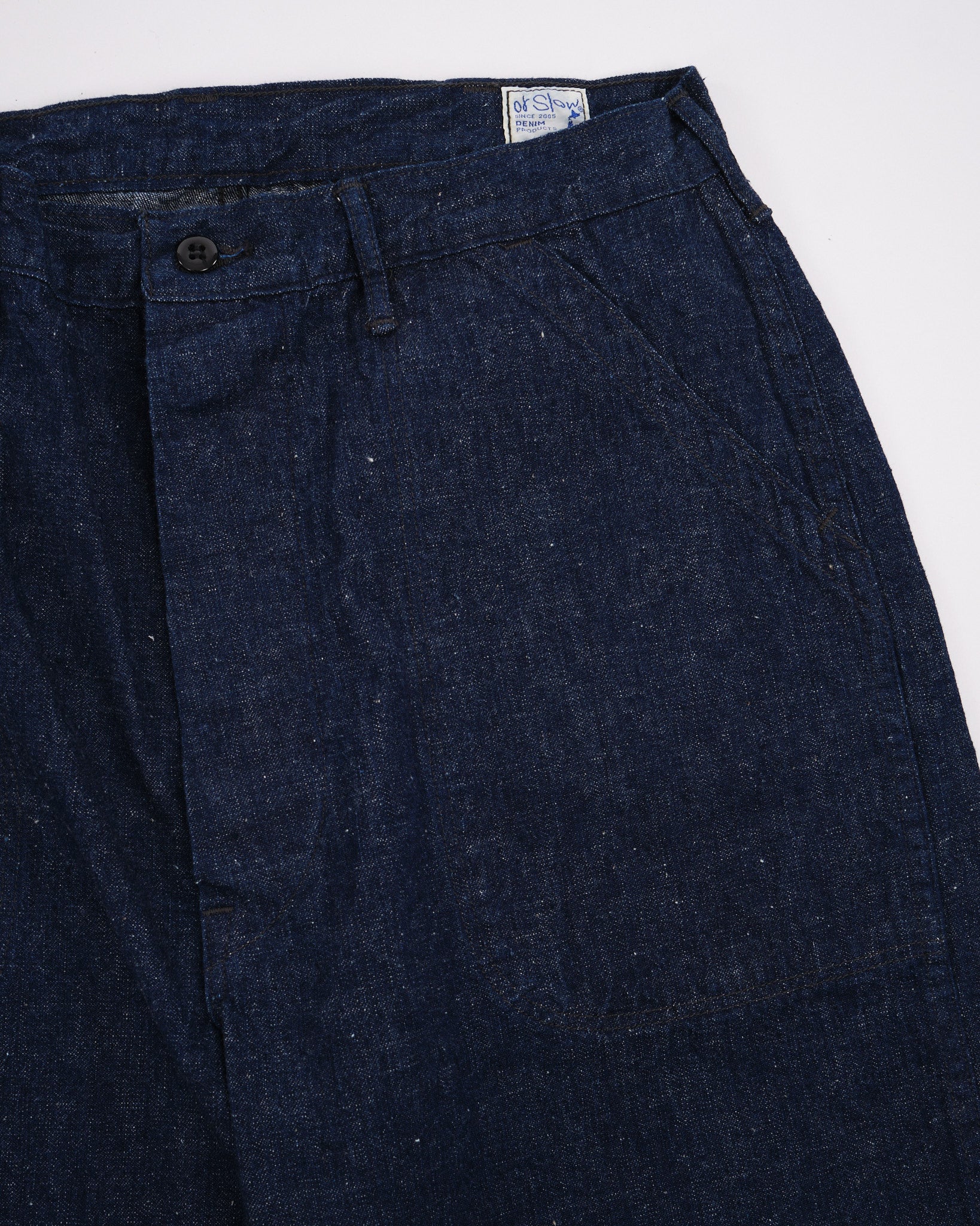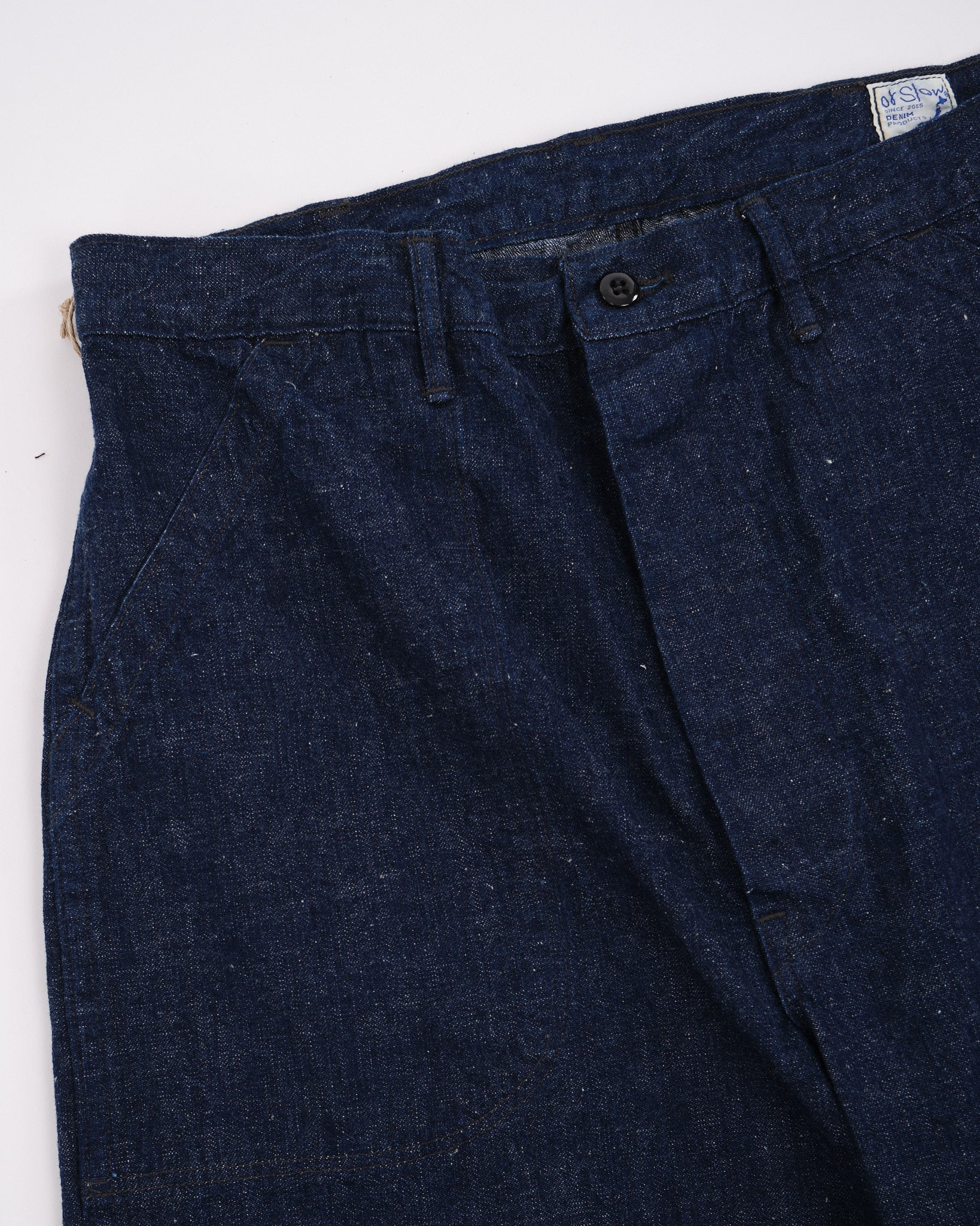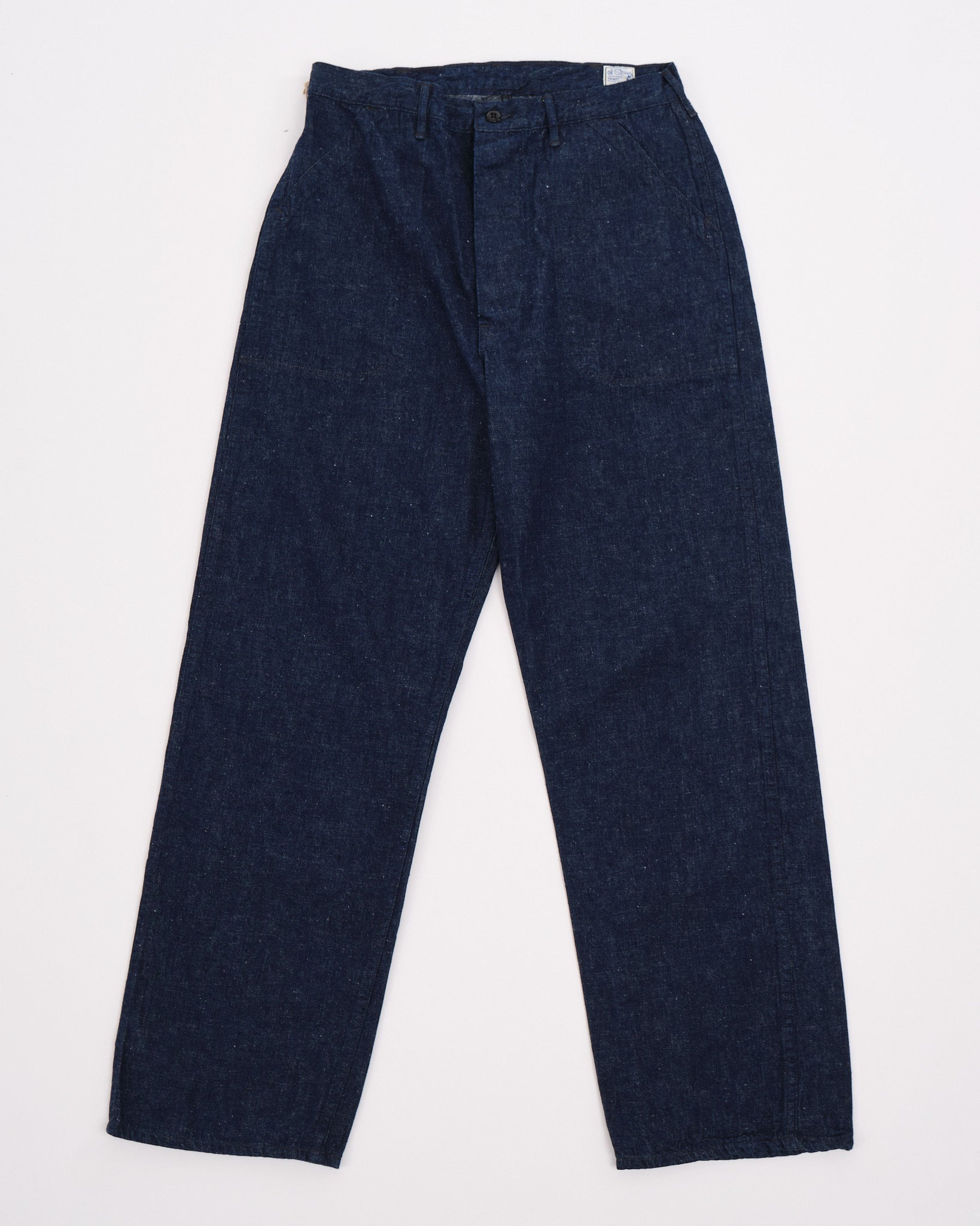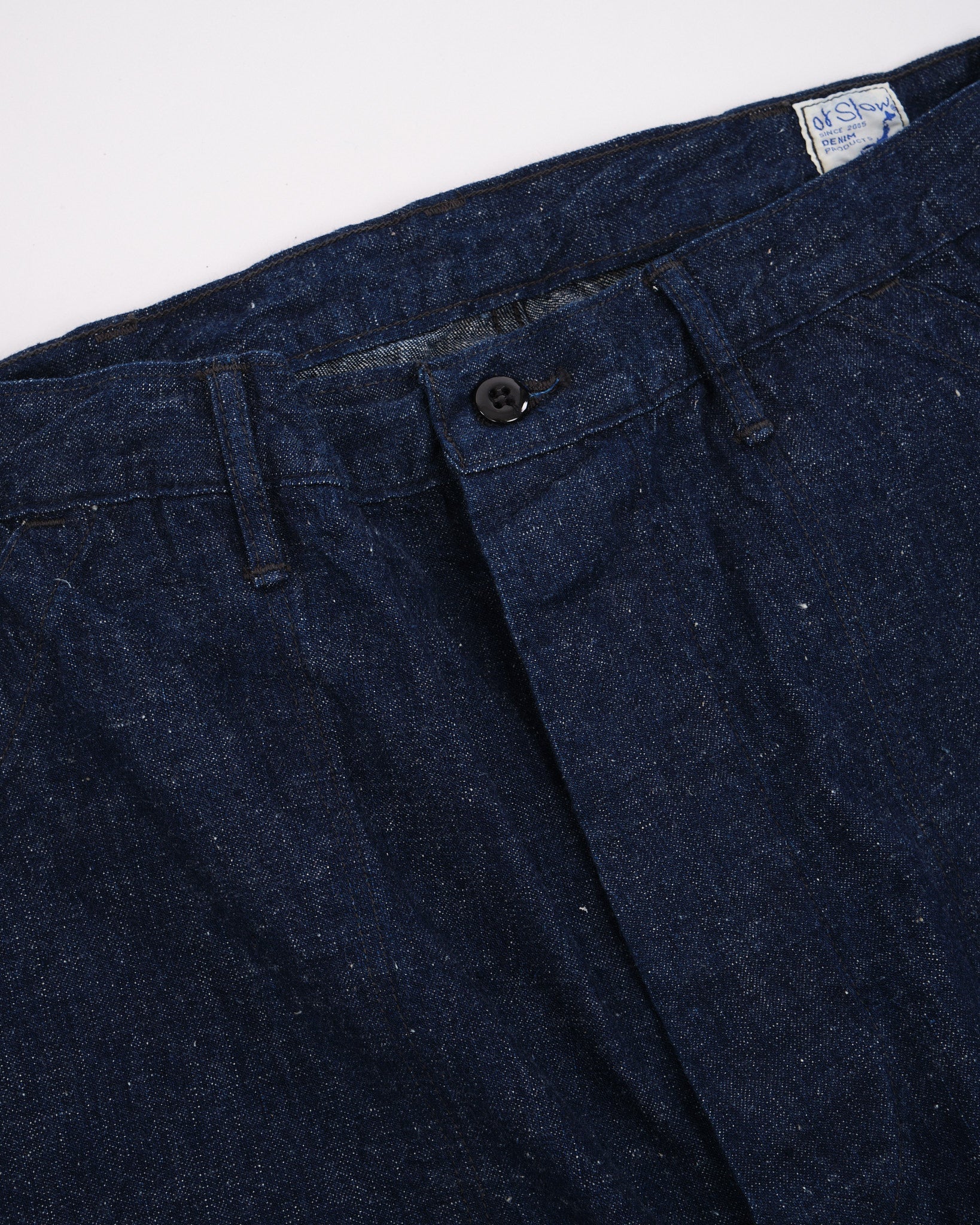 Maak kennis met de US Navy Utility Pants van orSlow. Een weerspiegeling van de oorsprong van het merk en de toewijding aan nauwkeurig ontwerp. Oorspronkelijk gelanceerd tijdens de dagen van orSlow, halen deze broeken inspiratie uit de werkkleding gedragen door de US Navy. De broeken zijn ontworpen met een knoopsluiting. Ze zijn vervaardigd met behulp van een 9oz lichtgewicht denimstof gecreëerd door een 2x1 weeftechniek, waarbij twee horizontale draden zijn verweven met een verticale draad. Deze unieke weefstijl creëert een getextureerd effect door het gebruik van dun garen voor de inslag. Het originele denim gebruikt in deze broeken toont orSlows toewijding aan het gebruik van kwaliteitsmaterialen en precieze weeftechnieken, die vanaf het begin integraal zijn geweest.