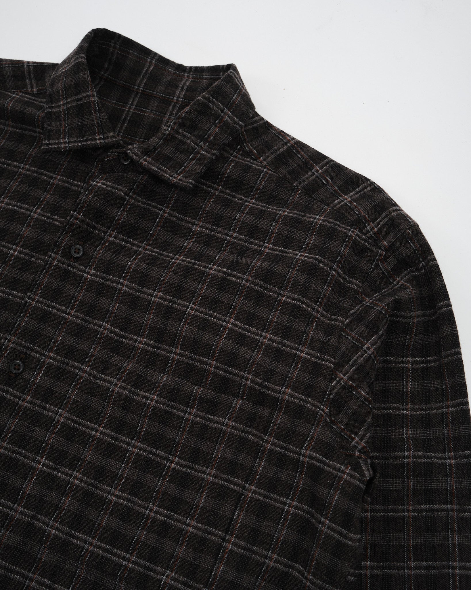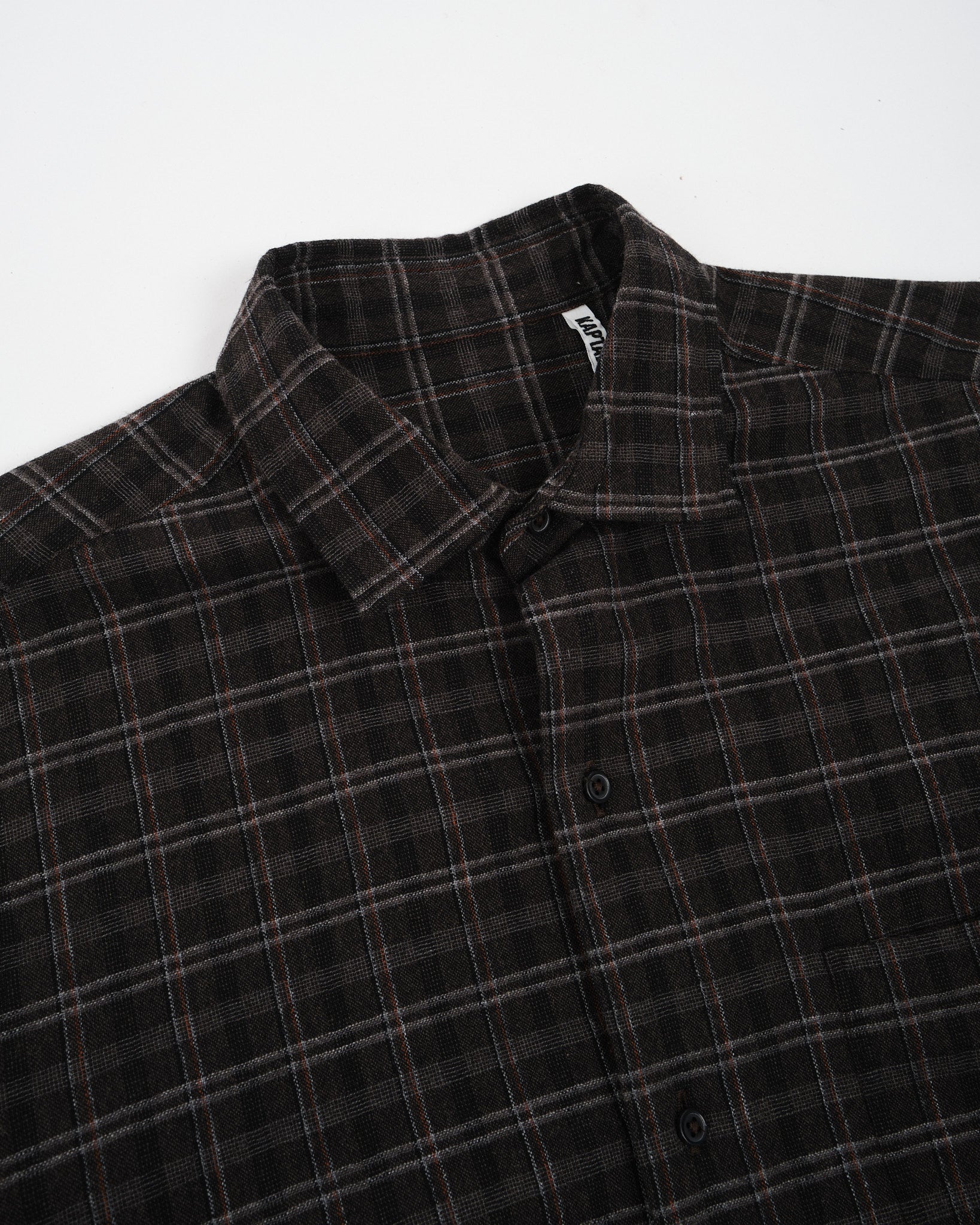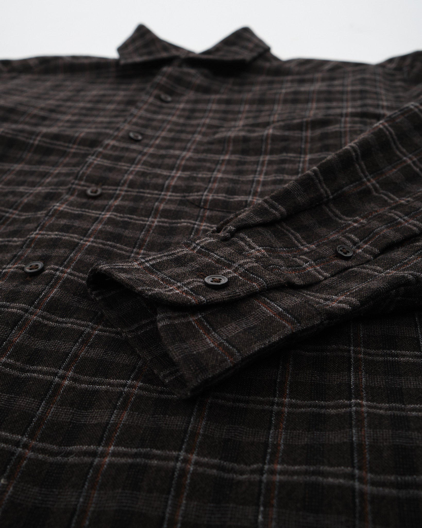 Welkom bij het Woolplaid Semi Spread Collar Shirt Brown van Kaptain Sunshine. Het draait allemaal om de details bij dit shirt, van zijn hoogwaardige gedraaide wollen garen tot de ontspannen pasvorm en semi-brede spread kraag. De mix van 80% wol, 15% nylon en 5% kasjmier zorgt niet alleen voor duurzaamheid, maar biedt ook een rijke, getextureerde afwerking. Je nieuwe basisstuk is hier!
