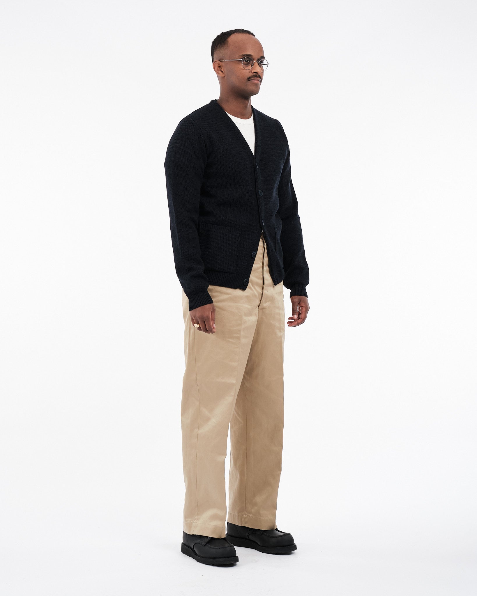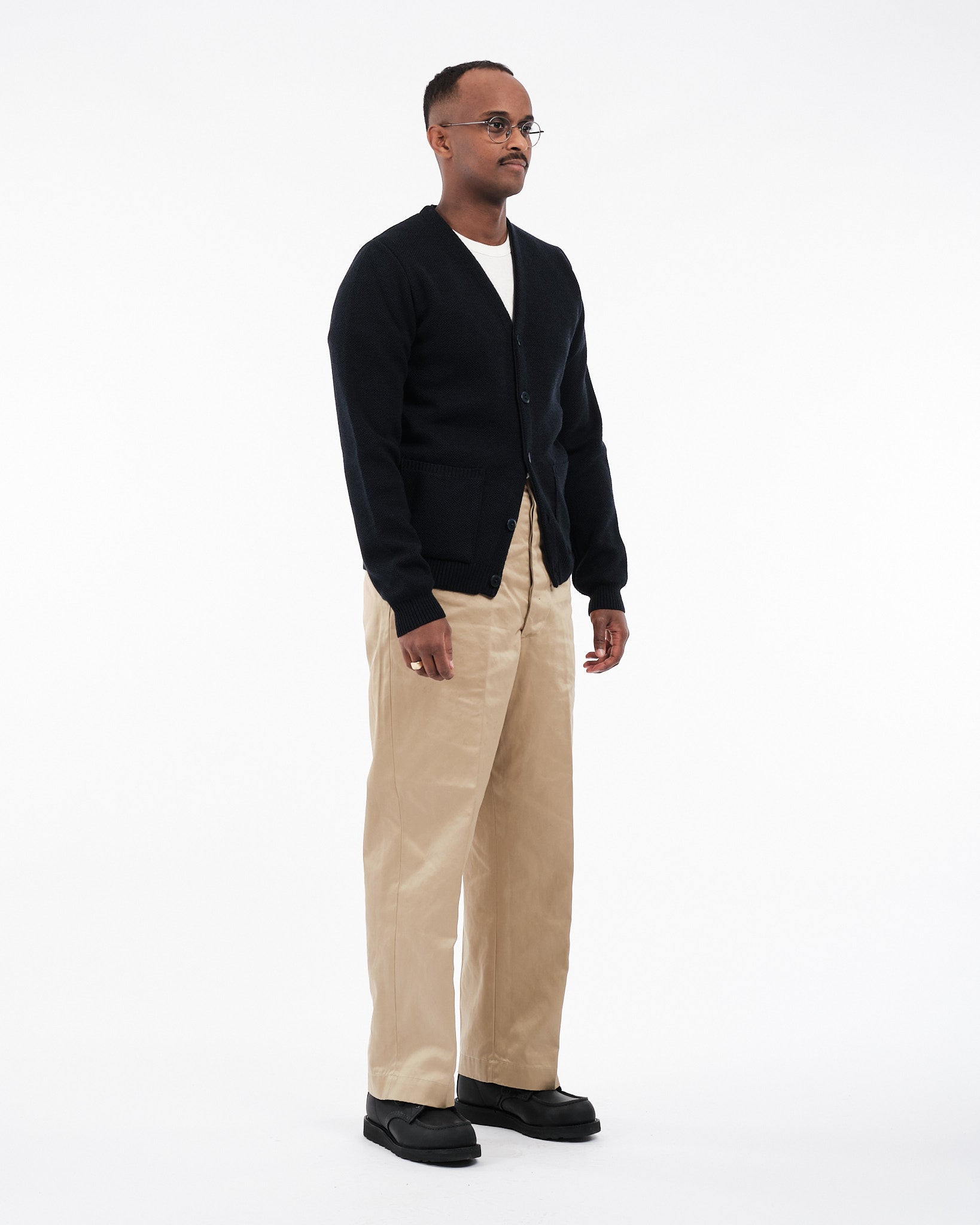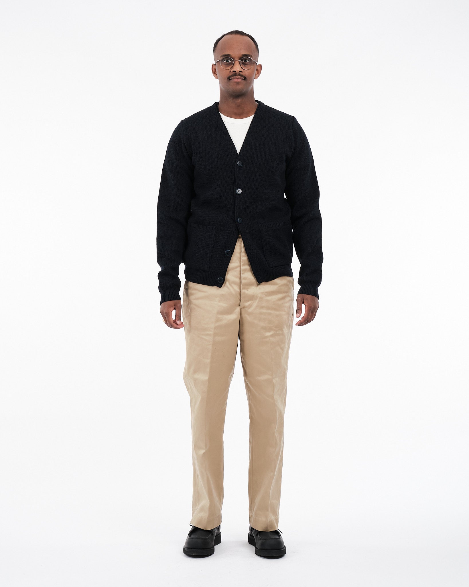 De cardigan heeft een ontwerp met vijf corozo knopen, afkomstig van duurzame palmnoten en geverfd in Frankrijk voor een milieuvriendelijke touch. De geribbelde manchetten en zoom geven het kledingstuk een afwerking terwijl de twee voorzakken naadloos opgaan in de algehele look. Volledig gemaakt in de werkplaats van Nitto Knitwear in Clamart, Frankrijk, toont deze cardigan de toewijding van het merk aan het produceren van kleding van premium kwaliteit.