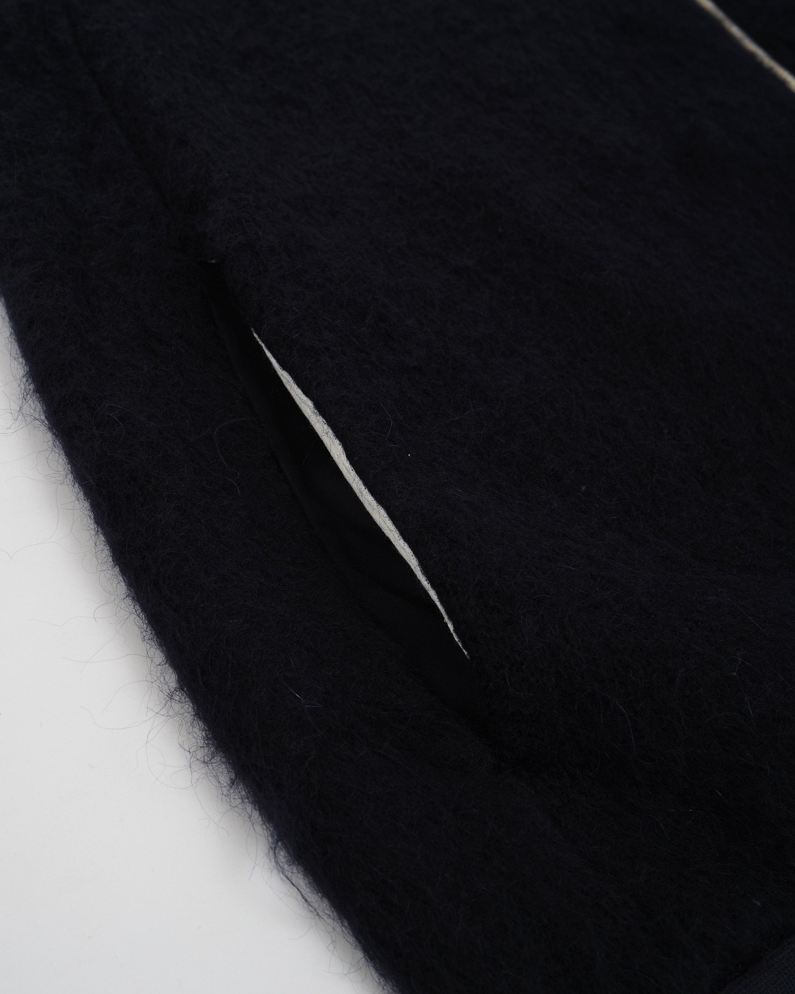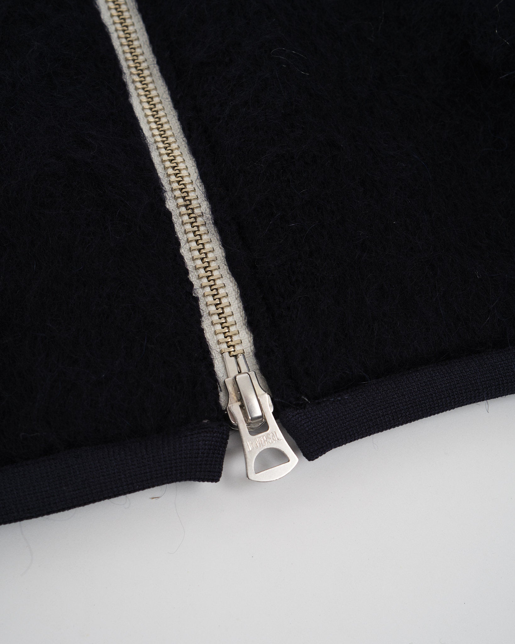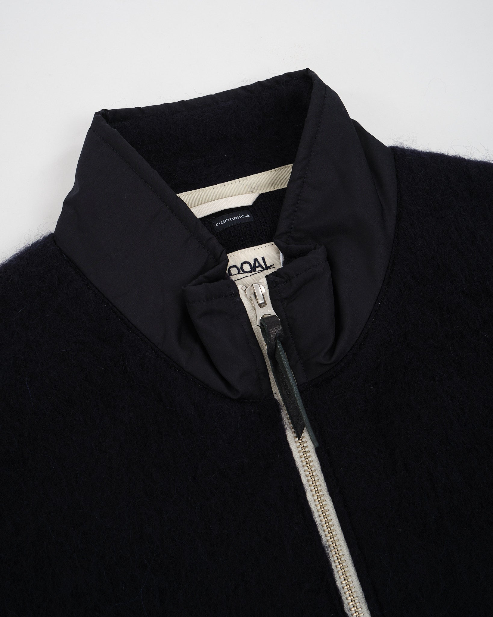 Domple jezelf in de ongeëvenaarde warmte en comfort van de Nanamica Zip-Up Mohair Vest in Navy. Dit stuk is vervaardigd met garen afkomstig van ruwe mohair, afkomstig van boerderijen die zich strikt wijden aan duurzame productiepraktijken, en zorgvuldig verwerkt in Japan. De verhoogde vezelafwerking geeft het vest een volume dat doet denken aan outdoor wear fleece. Geïnspireerd door het iconische fleece vest uit de jaren 90, ondergaat dit vest een moderne transformatie om een minimalistisch ontwerp te omarmen. Met zijn oversized silhouet belooft het een ontspannen, vrij vloeiende pasvorm voor elke gelegenheid.