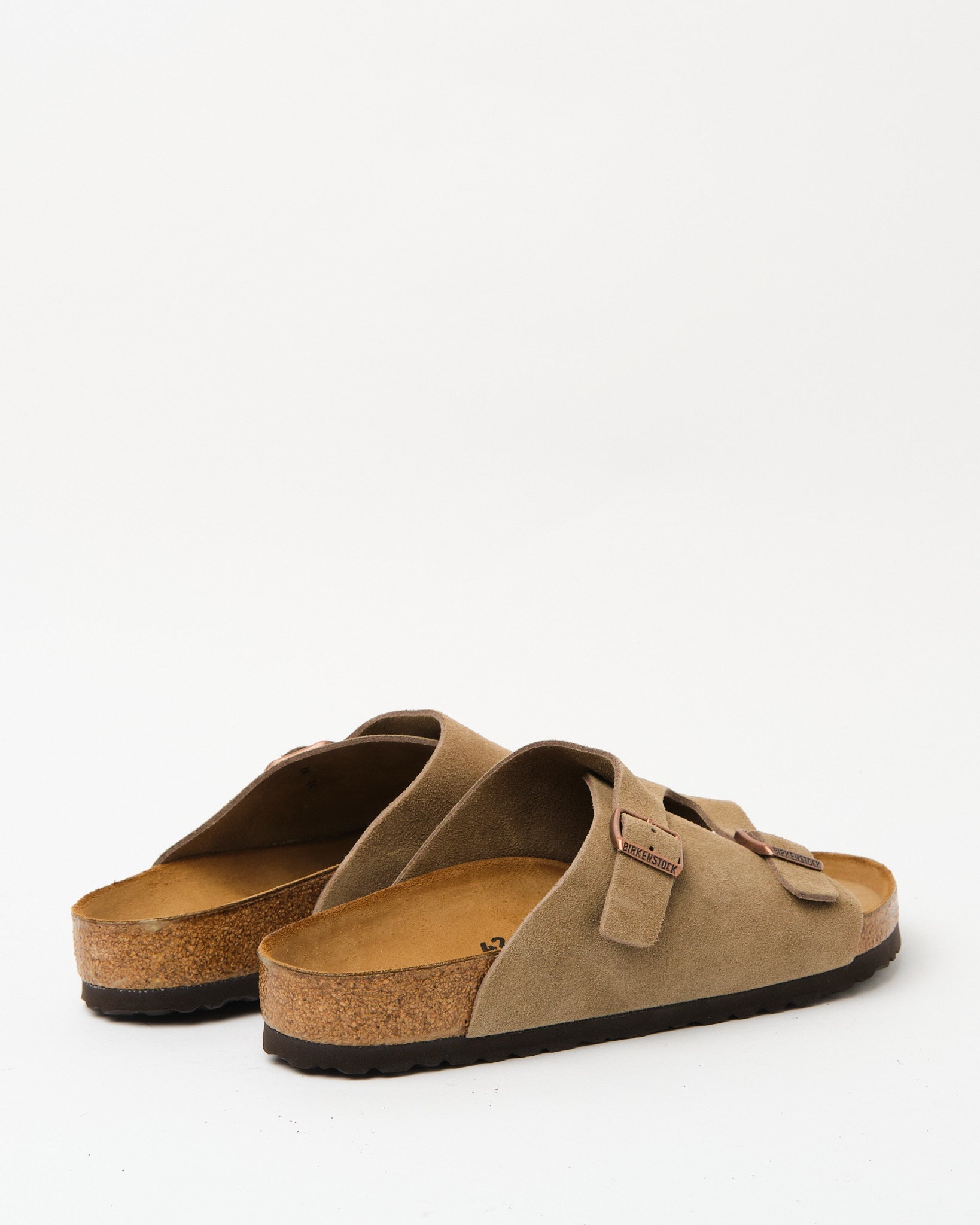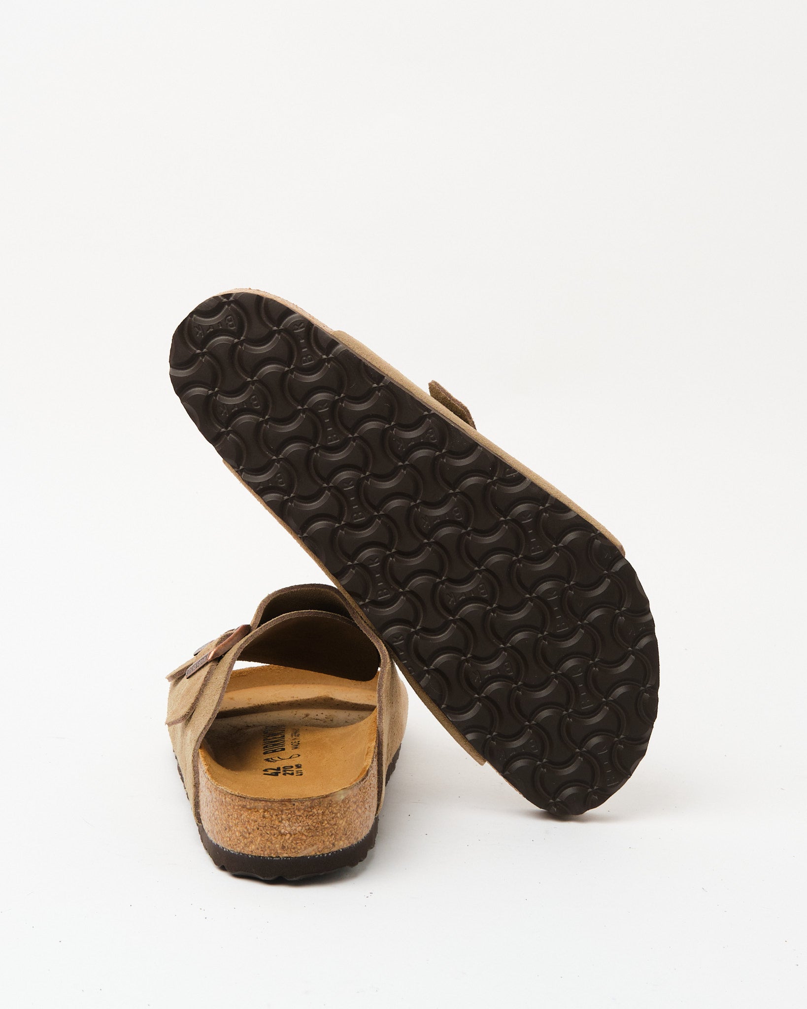 De brug slaan tussen het beste van twee werelden, het Birkenstock Zürich model in Taupe veloursleer biedt de stevigheid van een gesloten schoen en het luchtige gevoel van een sandaal. Geliefd bij zowel mannen als vrouwen, kenmerkt het ontwerp zich door bedekte zijkanten die ademend vermogen bevorderen via de open hiel en teenzone.